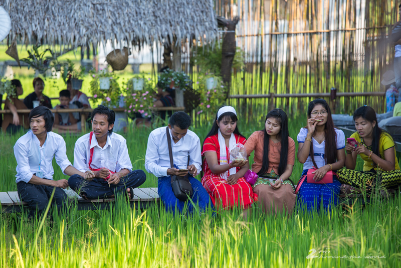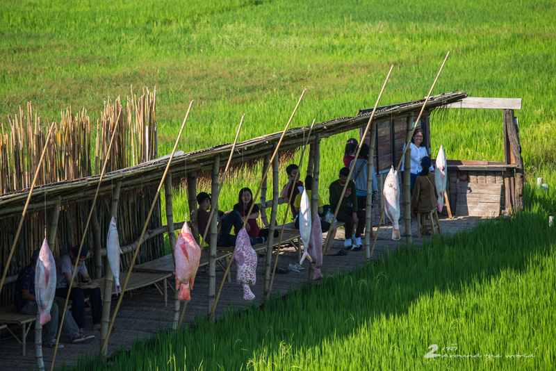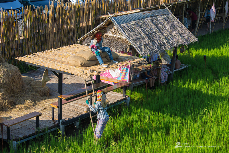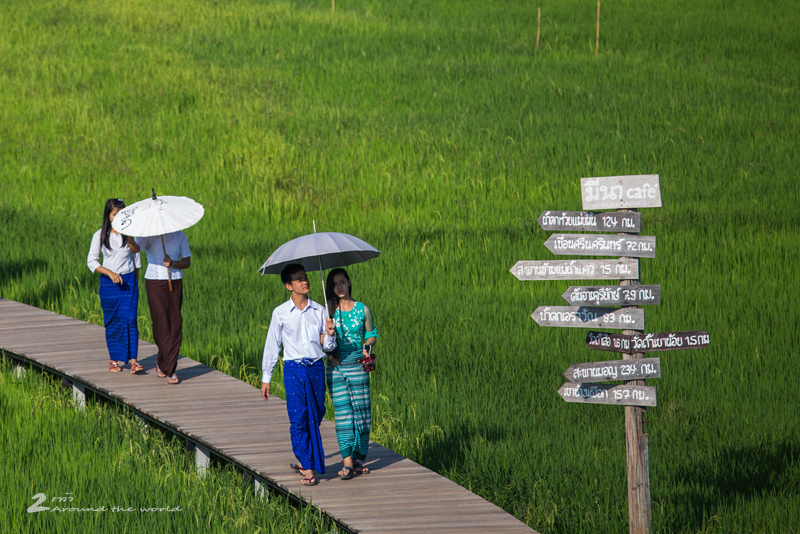 ผมมาที่มีนาคาเฟ่เป็นครั้งที่สองแล้ว ครั้งแรกมาไม่ถูกช่วงเวลา นาข้าวได้ถูกเกี่ยวไปหมดแล้ว บรรยากาศในวันนั้นดูแห้งแล้ง ผมแอบเปลี่ยนชื่อ “มีนา” เป็น “มีตอ” แทน มาหนนี้เลยขอเปลี่ยนชื่อจาก มีตอที่เคยแอบตั้งชื่อให้ใหม่ เป็น มีนา ตามชื่อร้านเดิม เพราะบรรยากาศโดยรอบ ณ วันที่ผมไปมันดูเขียวขจี มีนาคาเฟ่ ดูเปลี่ยนแปลงไปจากเดิมค่อนข้างเยอะเหมือนกัน มีการตกแต่งส่วนต่างๆ เพิ่มขึ้น แต่สิ่งที่ไม่เปลี่ยนไปเลยคือ จำนวนของลูกค้าที่ยังคงแน่นร้านอยู่เหมือนเดิม แถมรอบนี้มีชาวพม่าในชุดพื้นเมืองกว่า 50 คน มาสร้างสีสันบนสะพานไม้กันอย่างคึกคักด้วยครับ
