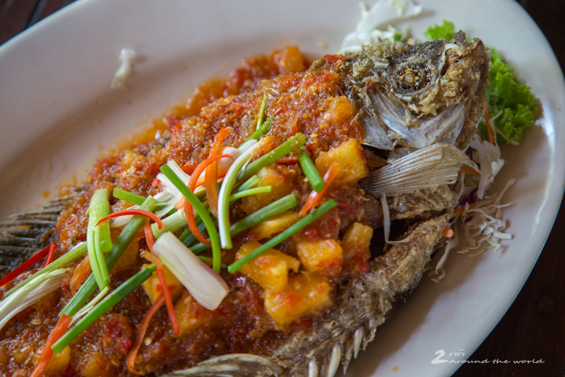 เมื่อไปถึงร้าน อาหารได้ถูกจัดเตรียมไว้เป็นที่เรียบร้อยแล้ว ร้านเรณูเป็นร้านอาหารตามสั่ง ถึงแม้กับข้าวจะดูหน้าตาบ้านๆ แต่เรื่องรสชาติ ขอบอกเลยว่าอร่อยดีทีเดียว ขนาดอาหารบางเมนูได้ทำเตรียมไว้ก่อนหน้าแล้ว แต่รสชาติอาหารไม่ได้จืดชืดตามไปเลย ที่เด็ดเห็นจะเป็นไก่ผัดพริก ที่รวมความจัดจ้านในเรื่องความเผ็ดและความกลมกล่อมของรสชาติได้ดีทีเดียว ตามมาด้วยปลาทับทิมทอดน้ำปลา ต้มยำปลาคัง ซดน้ำแล้วรู้สึกว่าโล่งคอเลย ตามมาด้วยซี่โครงหมูอบสับปะรด รสชาติจะออกหวานแต่มีการตัดเปรี้ยวเล็กน้อยด้วยสับปะรด อีกเมนูที่อยากแนะนำนั่นคือ ผัดผักปลังที่ทานคู่กับน้ำพริกกะปิ อร่อยมากๆ ปิดท้ายด้วยไข่เจียวครับ