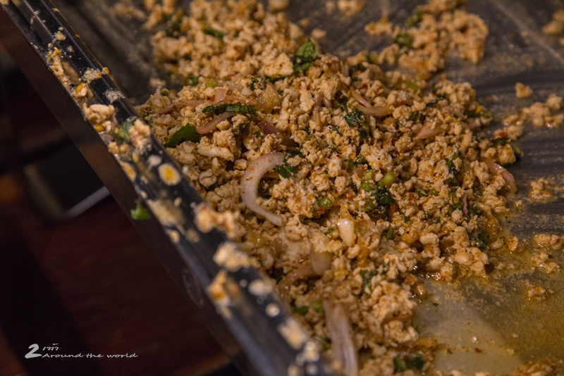 มื้อนี้ทางผู้จัดได้เตรียมยำคะน้าทะเล ลาบทอด ผัดผักรวมมิตร ปลานิลสามรส น้ำพริกธารา (น้ำพริกปลาแห้ง) ต้มโคล้งกระดูกอ่อน และแกงอะไรอีกสักอย่างนี่แหล่ะครับ หน้าตาอาหารดูดี รสชาติใช้ได้ แต่ละเมนูเสิร์ฟมาในจานค่อนข้างใหญ่เลยทีเดียวครับ