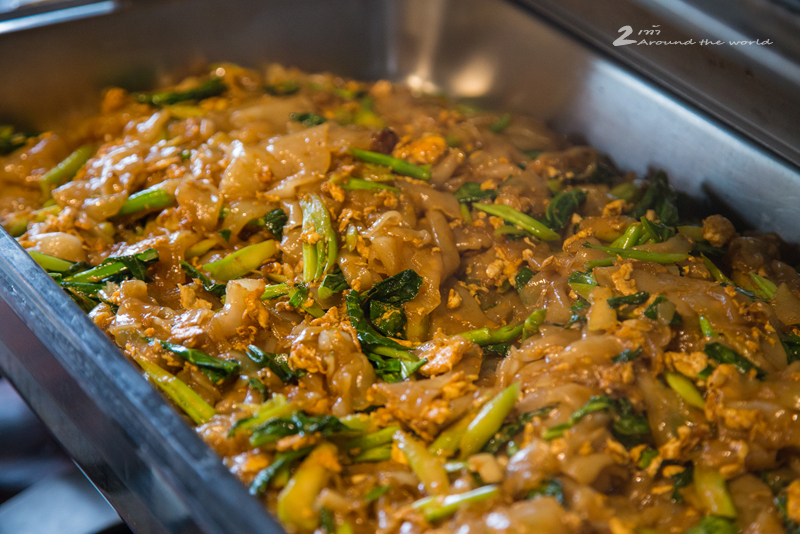 อาหารเช้ามีทั้งข้าวต้ม แฮม ไส้กรอก ไข่ดาว ผัดซีอิ้ว สลัด ขนมปัง ผลไม้ และกาแฟครับ