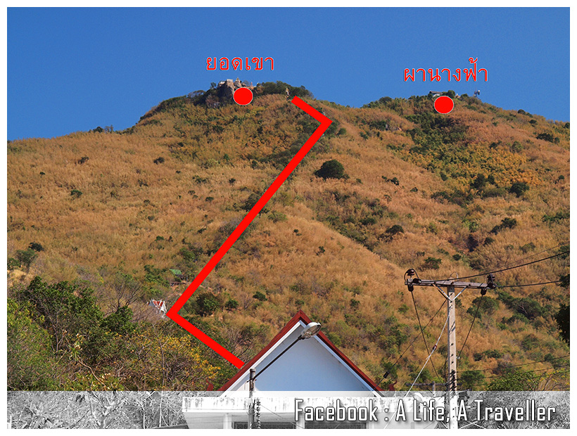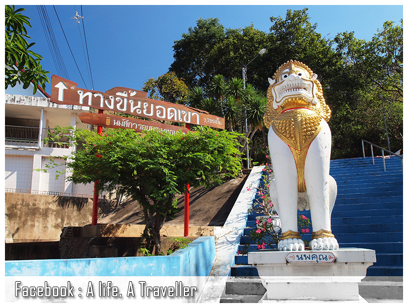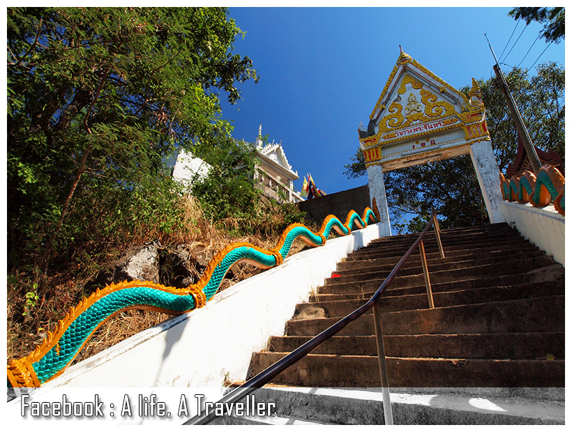 โดยรวมผมใช้เวลาทั้งเดินขึ้นเขา พักเหนื่อย ถ่ายรูป นั่งคุยกับร้านขายของ เบ็ดเสร็จคือ 1 ชั่วโมง 47 นาที โดยนับจากภาพถ่ายภาพแรกตอนทางขึ้นจนถึงลั่นชัตเตอร์ป้ายวัดบนยอดเขา สำหรับคนแข็งแรงตั้งใจเดินอย่างเดียวสักชั่วโมงก็ถึงแล้วครับ ส่วนขาลงผมไม่ได้ดูเวลารู้แต่ว่าแทบจะกลิ้งลงมาทีเดียว (ฮา...)