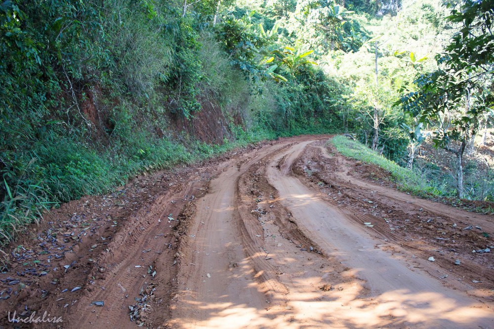 หนทางต่อจากนี้ เราต้อง Strong หน่อยนะ เพราะทางค่อยข้างจะเละ เป็นคอนกรีตแหละ แต่พังหมดแล้ว สลับกับดินแดงเป็นบางช่วง แนะนำนะ ให้เอารถกระบะ มอไซด์ หรือรถสูงๆหน่อย สงสารรถเตี้ยๆ