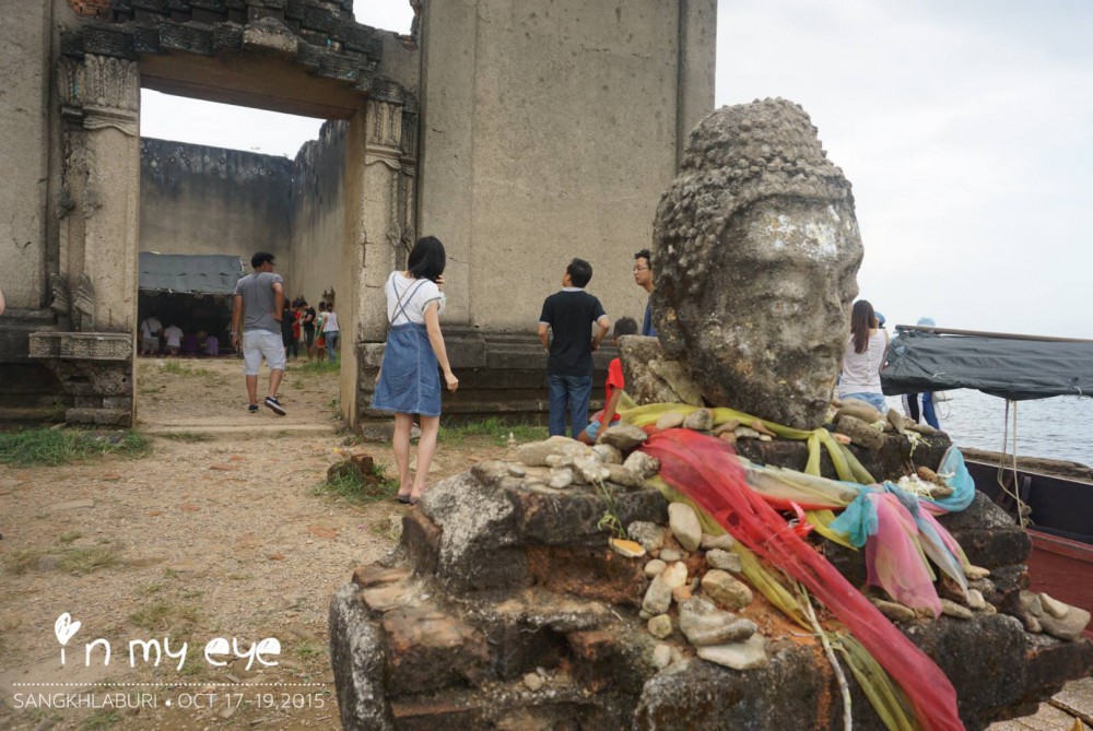 เรารู้จักน้องคนนึงในกลุ่มแบกเป้เที่ยวเค้าก็มาเที่ยวที่สังขละบุรีวันเดียวกันเหมือนกัน เราเลยลองชวนน้องเค้าไปว่าสนใจไปด้วยกันรึป่าว น้องไม่ปฏิเสธค่ะ แล้วเราก็ได้เพื่อนร่วมเดินทางเพิ่มมาอีกหนึ่งคน และในระหว่างเดินไปรับน้องเค้ามาเพื่อจะไปที่เรือ ก็ได้เจอพี่ๆที่น่ารักอีกสองคน เค้าถามว่า จะไปไหนกันหรอจ๊ะ เราเลยให้คำตอบพี่เค้าไปว่า ไปวัดจมน้ำค่ะ พี่ๆสนใจไปด้วยกันไหมคะ พี่เค้าก็มองหากัน แล้วหันมาบอกเราว่า สนจ๊ะ .. ได้เพื่อนร่วมลงเรือลำเดียวกันมาอีกสองคน รวมสมาชิกทั้งหมด 5 คน พร้อมแล้วค่ะ ลุยกันเลย ... มิตรภาพหาได้ไม่ยากค่ะ แค่เราเปิดใจ ^^