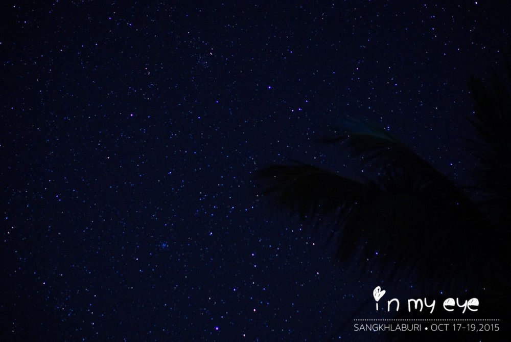 ในระหว่าง ที่เราขับรถกลับไปยังที่พัก เราได้เห็นในสิ่งที่เมืองหลวงหาดูได้ยาก ยิ่งไม่มีแสงรบกวนจากอาคารบ้านเรือนแล้วล่ะก็ ดาวบนท้องฟ้านี่แหละที่ทำให้เรามีความสุขมากเมื่อได้มอง ดาวที่ระยิบระยับบนท้องฟ้า นั่งจินตนาการไปว่า มันคือกลุ่มดาวนู่นกลุ่มดาวนี้ ... จำได้ว่า เคยเห็นรีวิวภาพถ่ายล่าทางช้างเผือก จากรีวิวของน้าธำรงค์นี้เลยค่ะ http://pantip.com/topic/34286750 เลยลองถ่ายบ้าง ตั้งค่ากล้องตามที่น้าบอกเลย .. มือใหม่หัดล่าทางช้างเผือก เลยได้ภาพการล่าครั้งแรก แบบนี้ค่ะ ไม่สวยเหมือนของน้า แต่ดีใจที่ได้ลองค่ะ ...