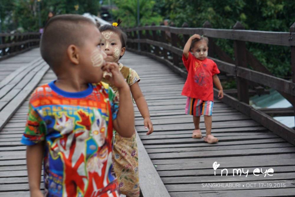 พอเราลงมาถึงข้างล่างแถวสะพานมอญ จะมีน้องๆคอยถามว่า "พี่ทราบประวัติสะพานมอญรึยังค่ะ ถ้ายังหนูขออาสาเล่าประวัติให้พี่ฟังค่ะ" หรือ "พี่นั่งเรือไปวัดจมน้ำมารึยังครับ" และจบท้ายด้วย "พรุ่งนี้เช้าพี่อย่าลืมมาตักบาตรตรงฝั่งมอญนะ" .. เด็กๆที่นี่น่ารักค่ะ ..