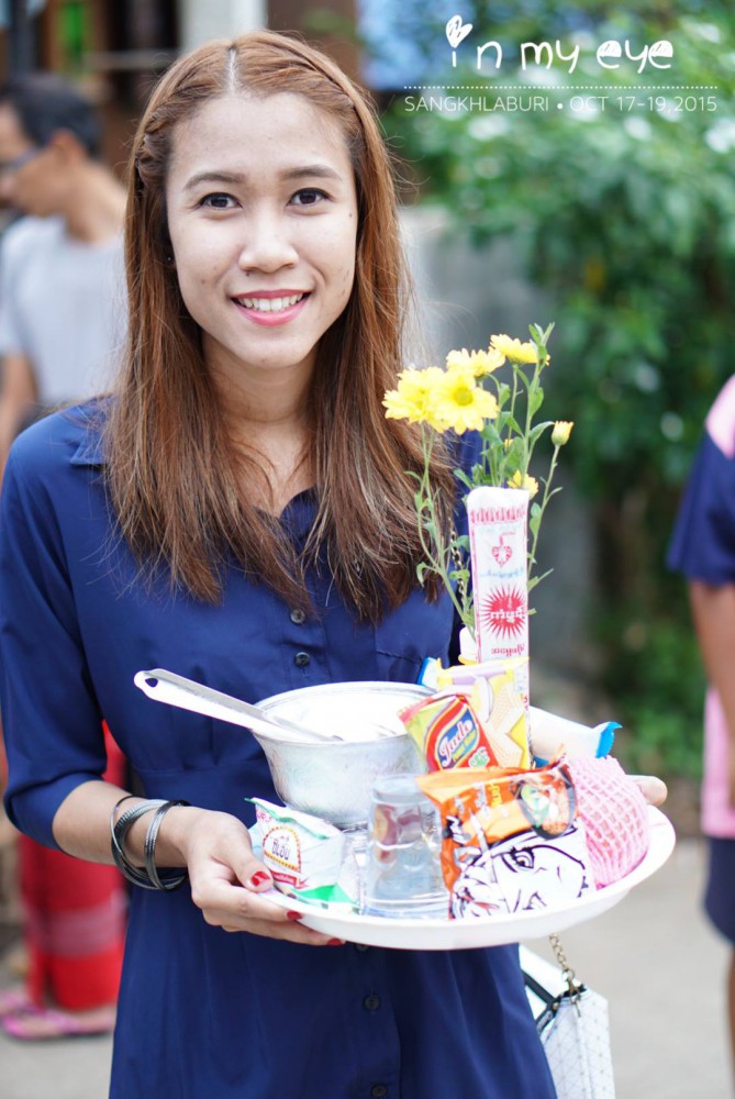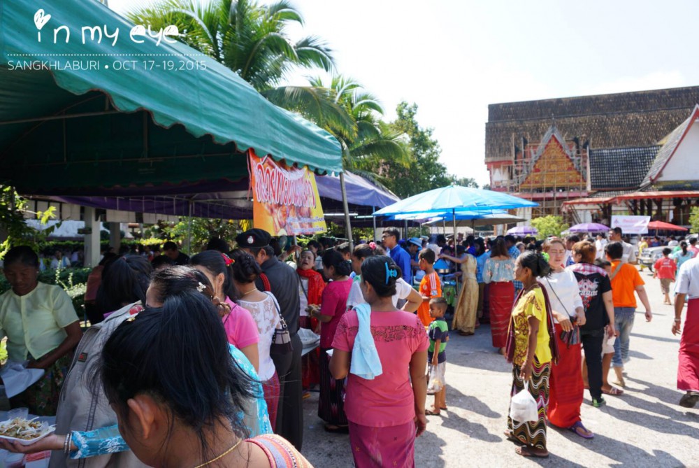ก่อนเราข้ามไปฝั่งมอญ เราสามารถทำบุญตักบาตรที่ฝั่งนี้ก่อนได้ พระทางฝั่งนี้จะให้พรเราด้วย ชุดใส่บาตรมีให้เลือกซื้อตลอดทาง ไม่ต้องกลัว ^^