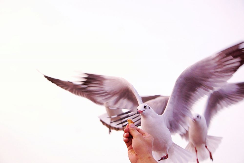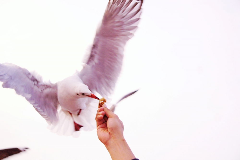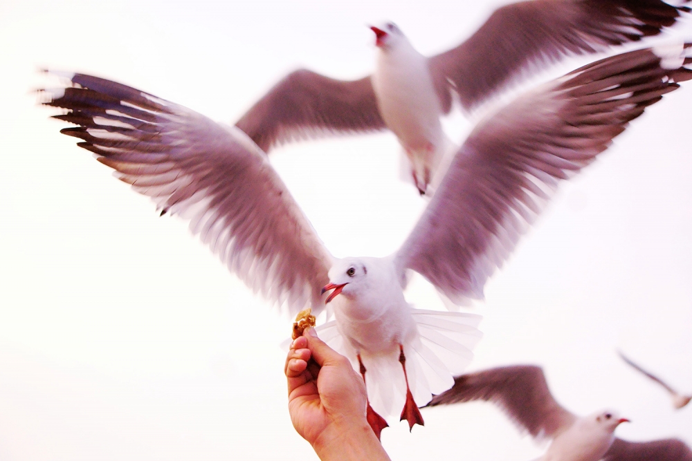 ที่นี่มีกากหมูขายถุงละ 10 บาทเอาไว้โปรยให้นกกิน หรือใครสกิลสูง จะถือกากหมูให้นกนางนวลมาโฉบกิน แล้วแชะภาพไว้โพสต์ลง IG ก็ได้นะ เอาจริงๆ เราก็แอบสงสารนกเหมือนกัน กลัวกินกากหมูจนเป็นไขมันอุดตันในเส้นเลือดก่อนจะไปถิ่นซะก่อน