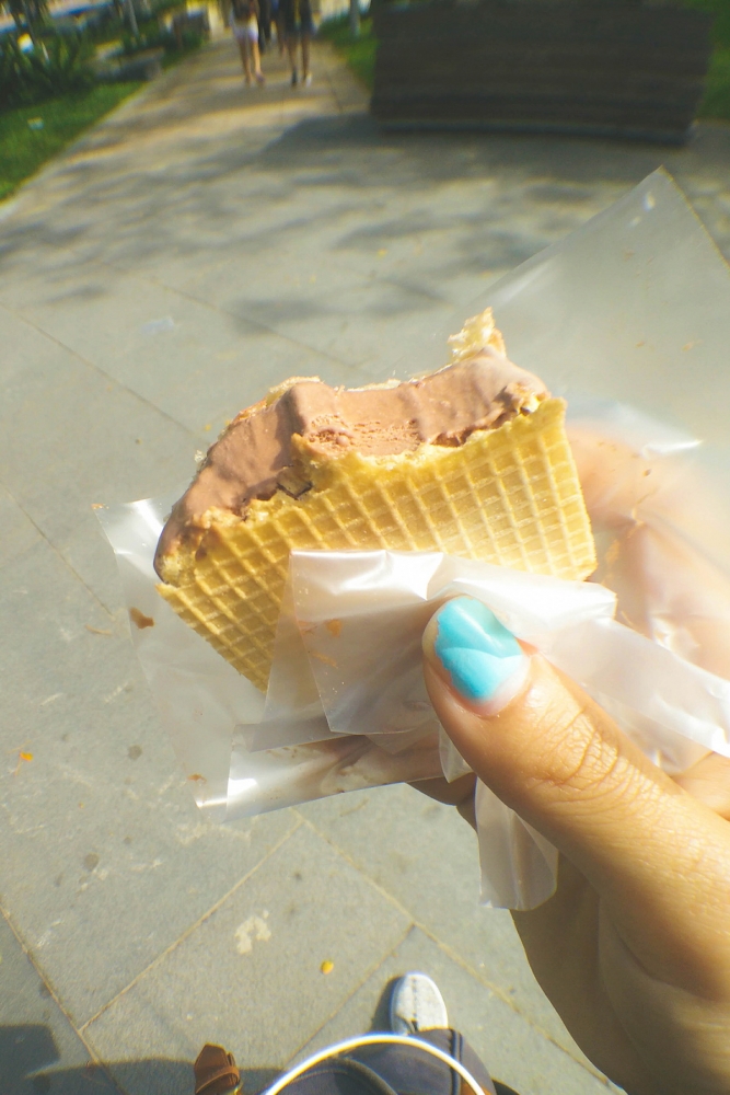 เดินเลื่อยๆมาจนถึงบูกิสสตรีท เจอร้านไอติมก็โดนไป 1 เหรียญ