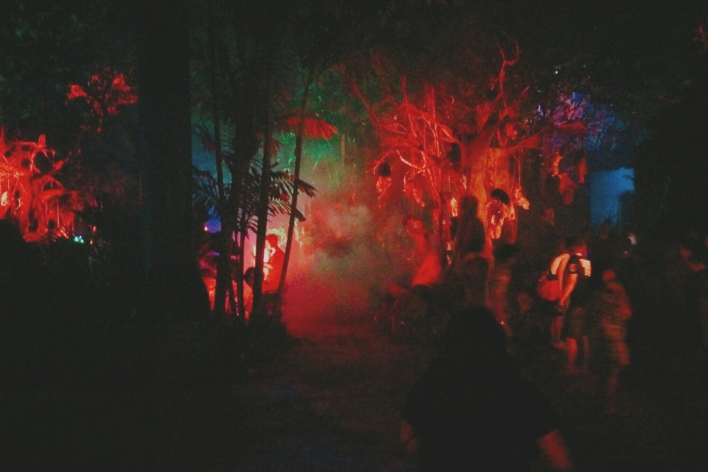 ไปเดินดูรอบๆ ก็ได้ เห็นคนเดินไปเยอะๆก็ตามๆ เขาไปเผื่อมีอะไร แล้วพวกเราก็เจอที่ที่เขามานั่งรอนอนรอชมแสดงไฟประกอบเพลง นั่งรอได้ซักพักเพื่อนก็เดินมาบอกว่าตั๋วที่พี่ 2 คนที่เจอบนรถเมล์คือตั๋วขึ้นไปดูวิวข้างบนต้นไม้ แต่ปัญหาคือ มี 7 คน กับตั๋ว 2 ใบ จะทำไงละ??
