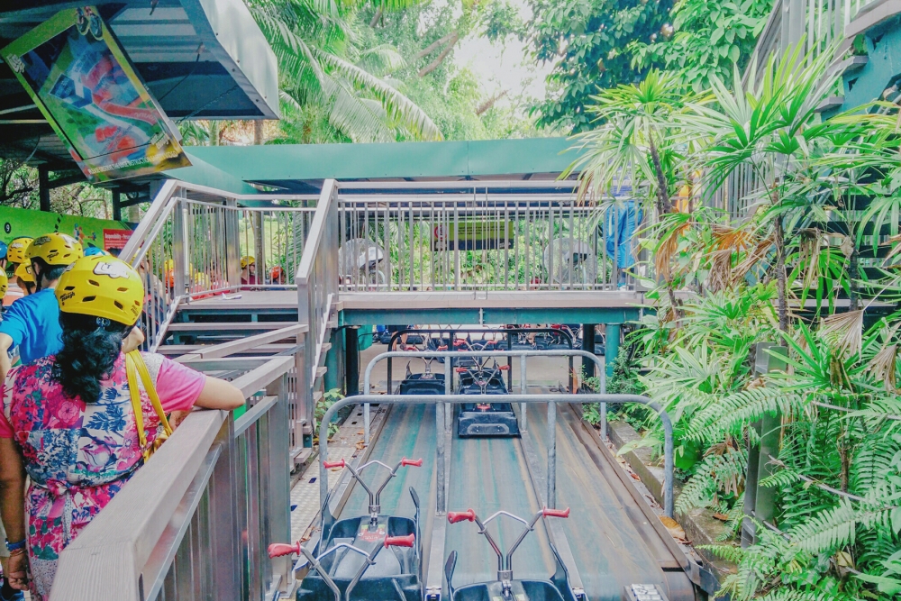 แล้วเราก็ไปเล่น sky line ต่อ ราคา 18 เหรียญ 1 รอบโดยเราจะต้องนั่งกระเช้าข้ามเขาเพื่อไปจะไปขับรถ