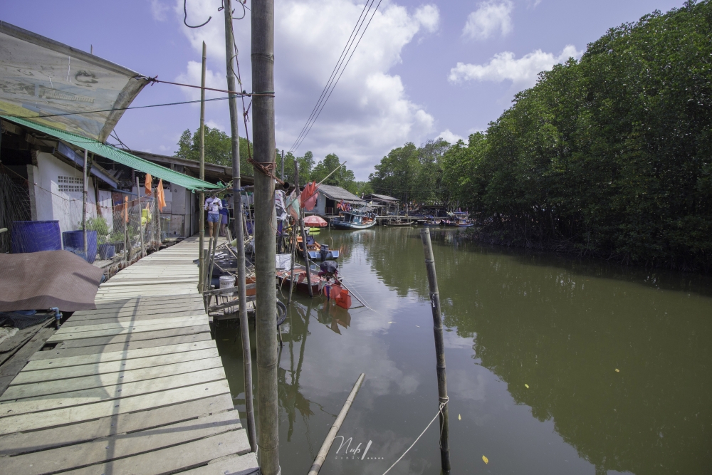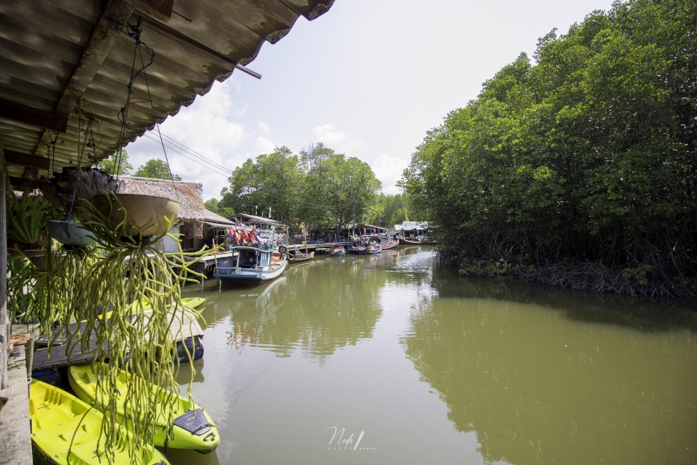 บ้านสลักคอก เป็นชุมชนที่นักท่องเที่ยวนิยมมานั่งเรือชมธรรมชาติ ของป่าชายเลน และดูพระอาทิตย์ตกตอนเย็น แต่วันนี้ขอไม่นั่งครับ เพราะแดดค่อนข้างร้อน
