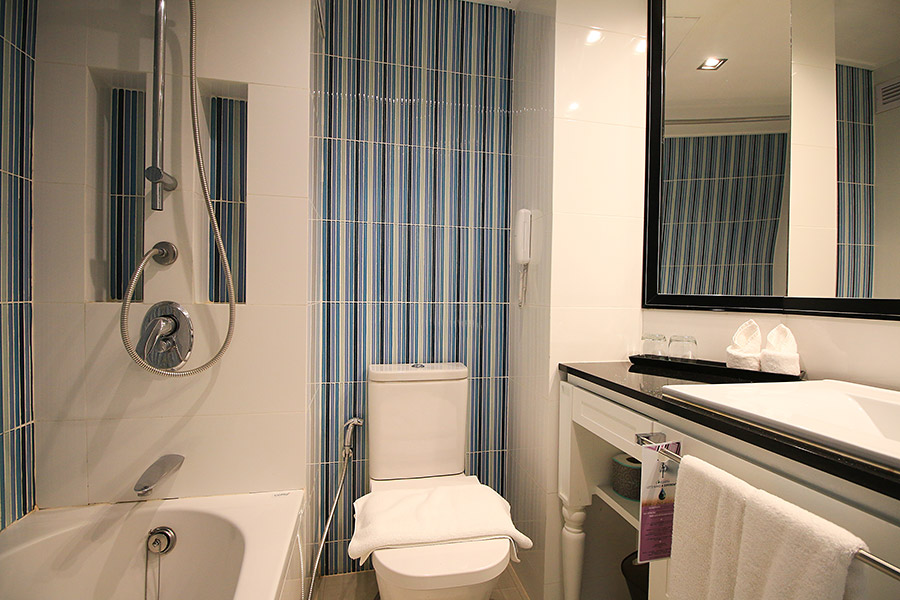 ห้องน้ำมีทั้งอ่างอาบน้ำและฝักบัว สบู่แชมพูที่นี่มีส่วนผสมของอโลเวร่า โรสแมรี่ มิ้นต์ ผมชอบมาก ทั้งหอมและเย็นชื่นใจ ส่วนอุปกรณ์อำนวยความสะดวกอื่นๆ ถือว่าโอเคเลยล่ะ