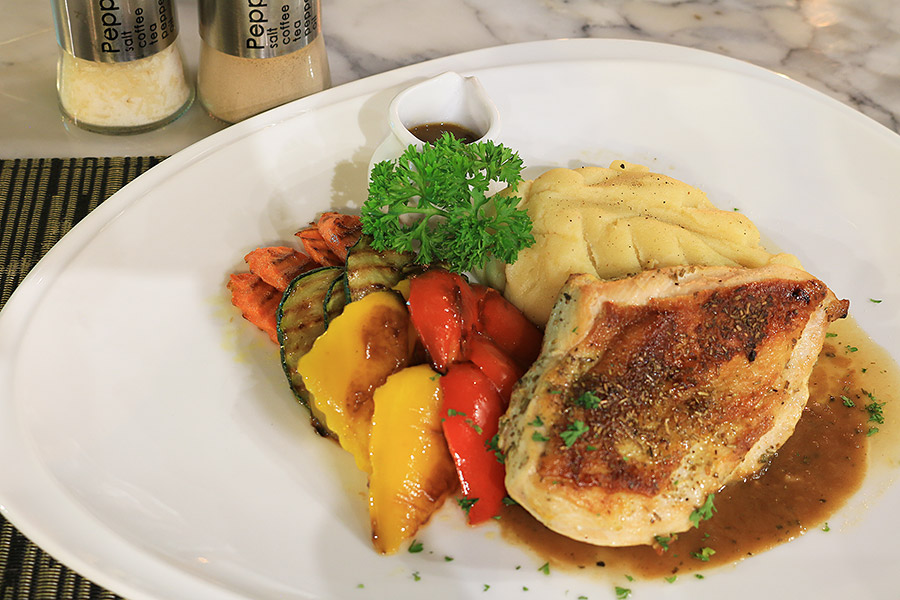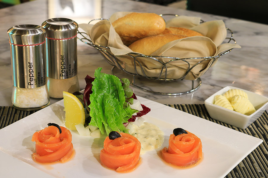 เราทานดินเนอร์กันที่นี่ เชฟอำนาจ จากเวฟ โฮเทล ตามมาบริการถึงที่ แซลมอนรมควัน สเต็กไก่ สเต็กเนื้อ ผัดไทกุ้งสด ตบด้วยของหวานแบล็ค แอนด์ ไวท์ มูส ทานพร้อมกับค็อกเทลเบาๆ สองแก้ว ค็อกเทลกับของหวานเข้ากันอย่างเหลือเชื่อ