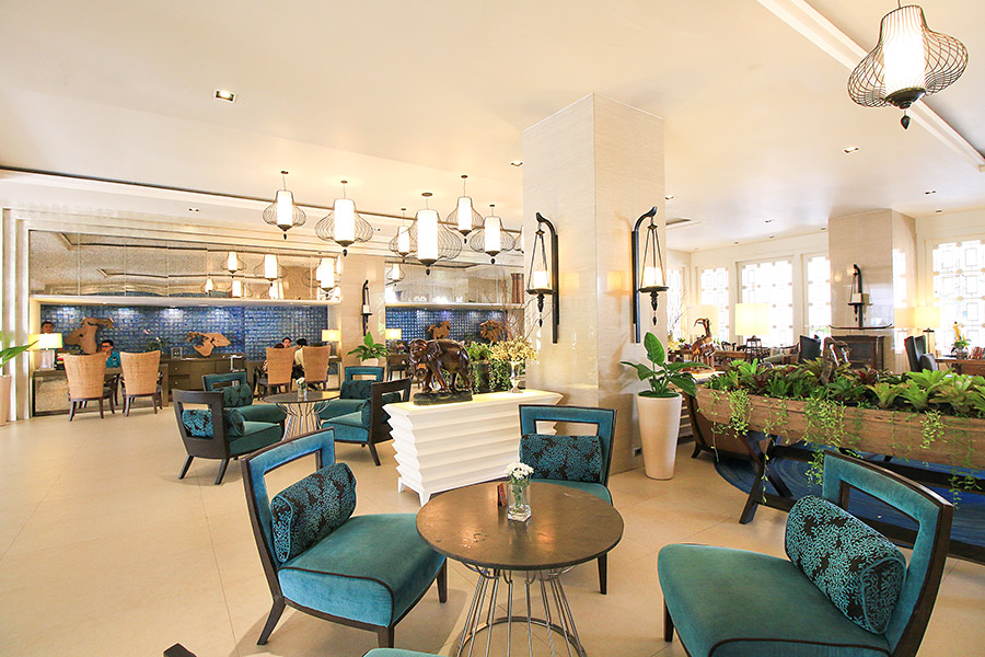 บรรยากาศล็อบบี้ที่ เดอะ เบย์วิว สบายๆ ให้กลิ่นอายความเป็นไทยฉาบด้วยความหรูหราบางๆ บางมุมตกแต่งด้วยของเก่าของโบราณ