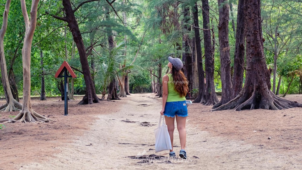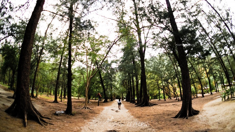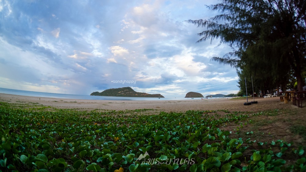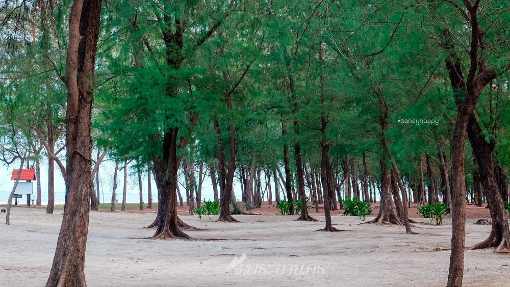 ลงเขามาสู่พื้นราบชายฝั่งของหาดแหลมศาลา เต็มไปด้วยต้นสนบรรยากาศร่มรื่นมากค่ะ ชายหาดที่นี่ขาวสะอาดเพราะเป็นเขตบ้านพักอุทธยาน ที่มีเจ้าหน้าที่ดูแล บ้านพักที่นี่น่าพักมาก ทะเลก็สวยมาก ยังคิดเลยว่า คราวหน้าจะหาโอกาศมาพักที่นี่บ้าง