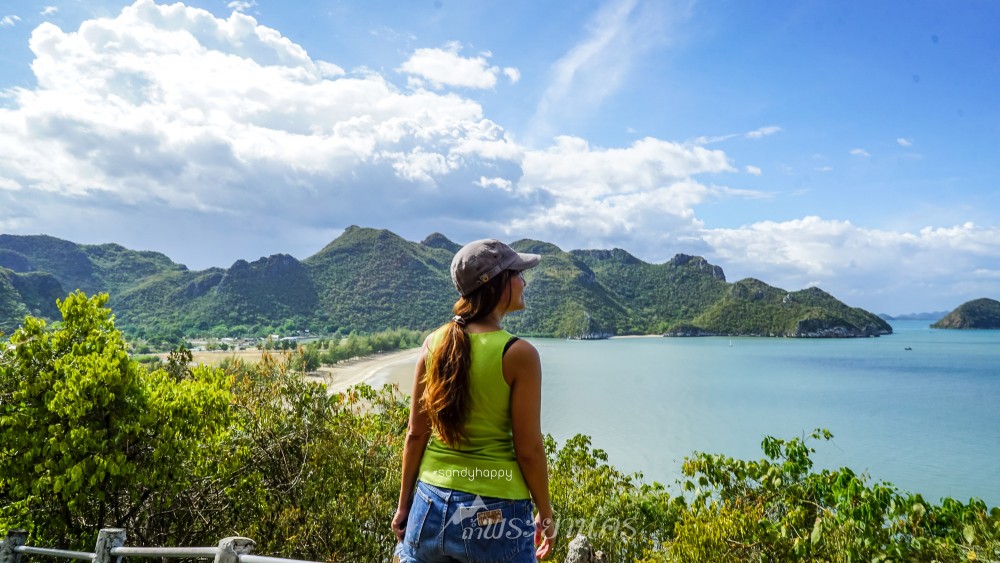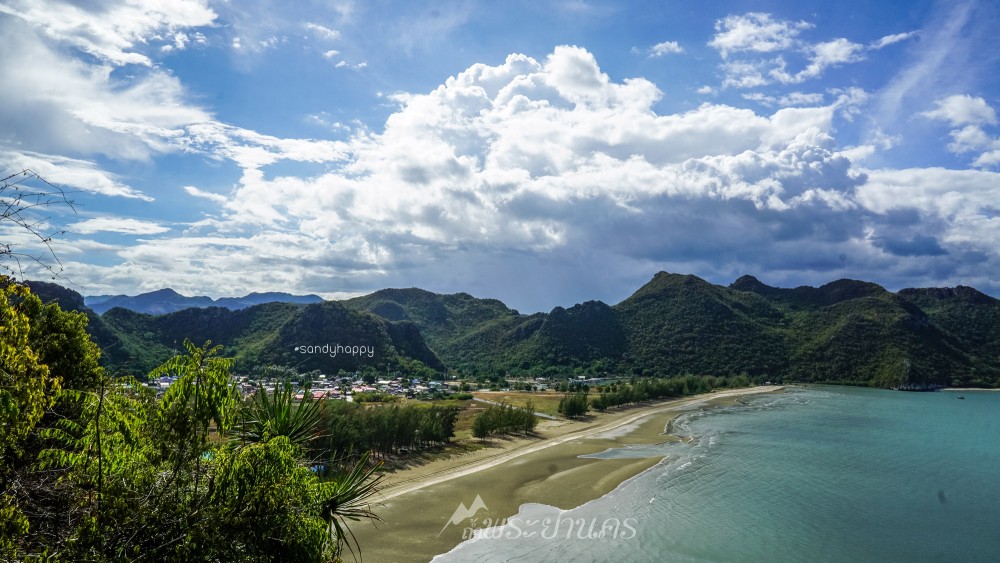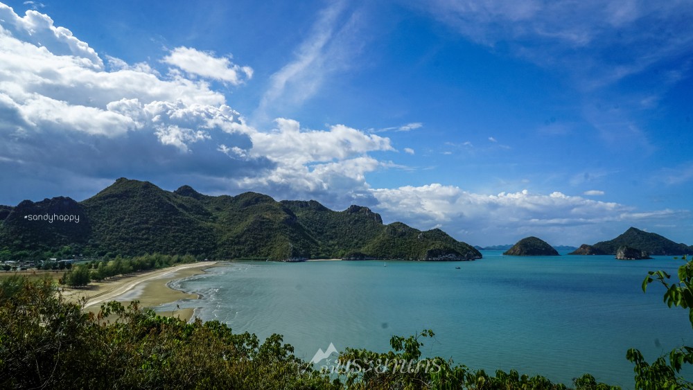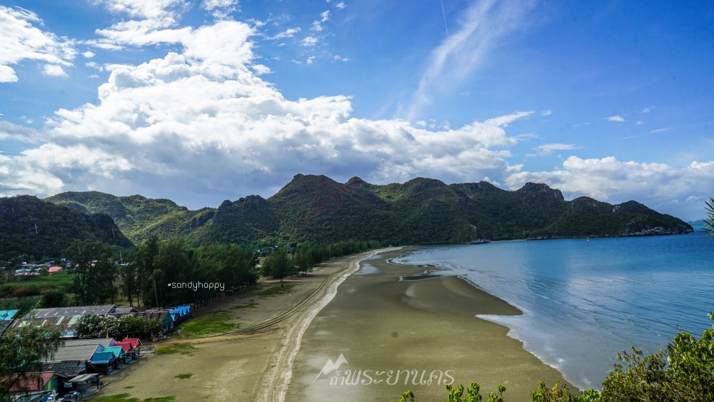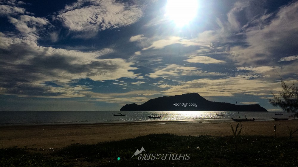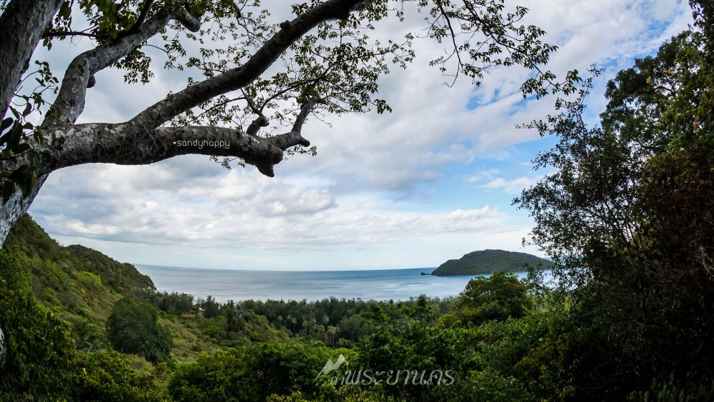 มองออกไปเห็นวิวชายหาด เขาและเกาะไกลๆ ฟ้าหลังฝนนั้นสวยจริงๆค่ะ