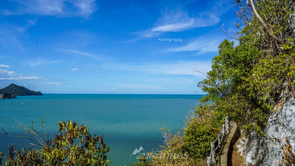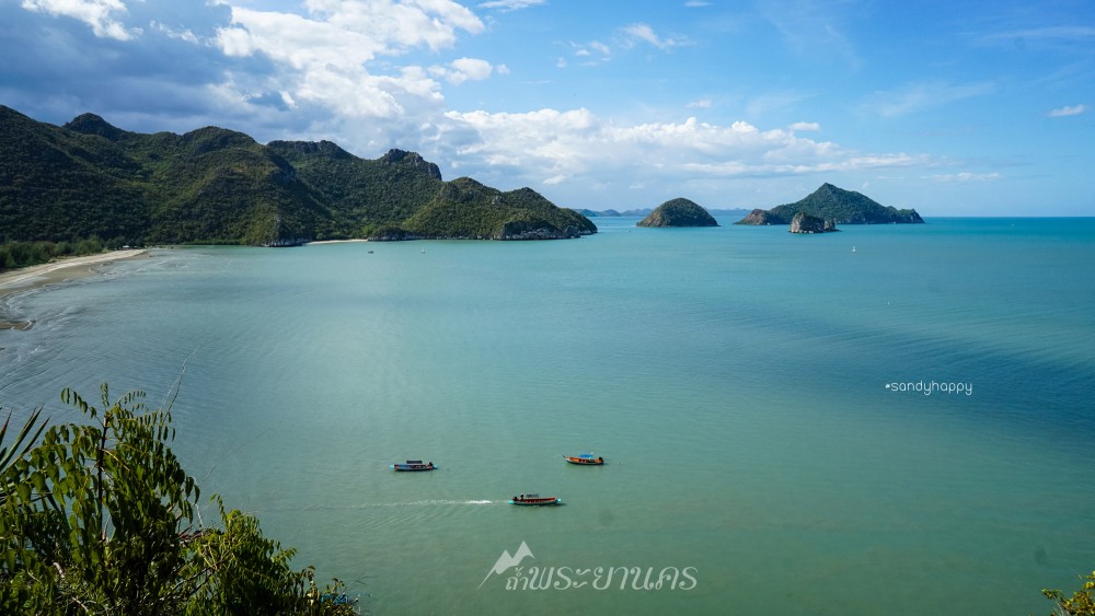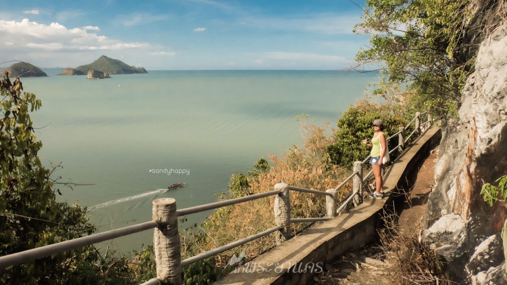 ยิ่งเดินขึ้นไปสูงก็ยิ่งสวย มองลงมาเห็นเรือมารับคนอยู่ไกลๆ