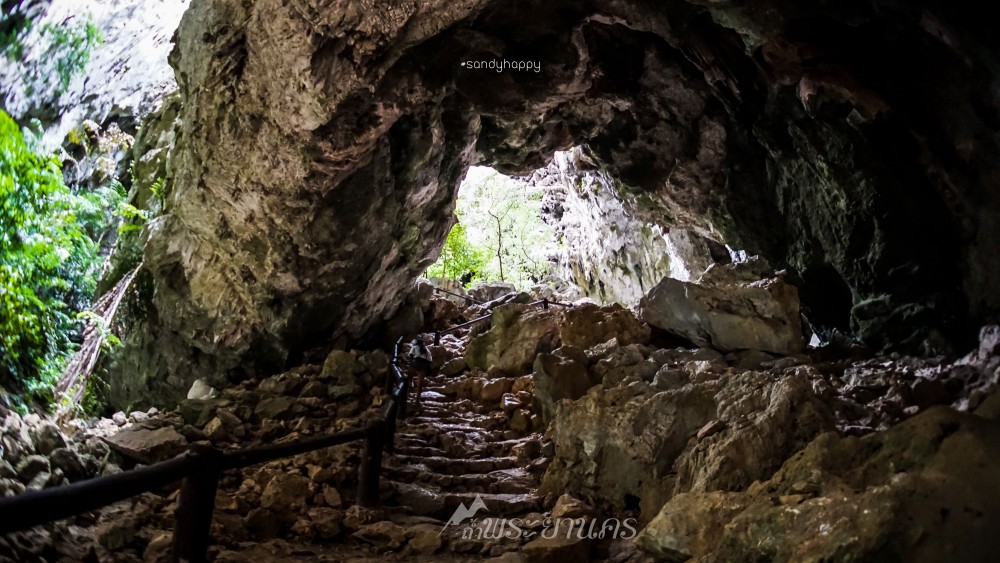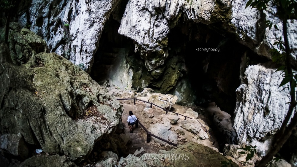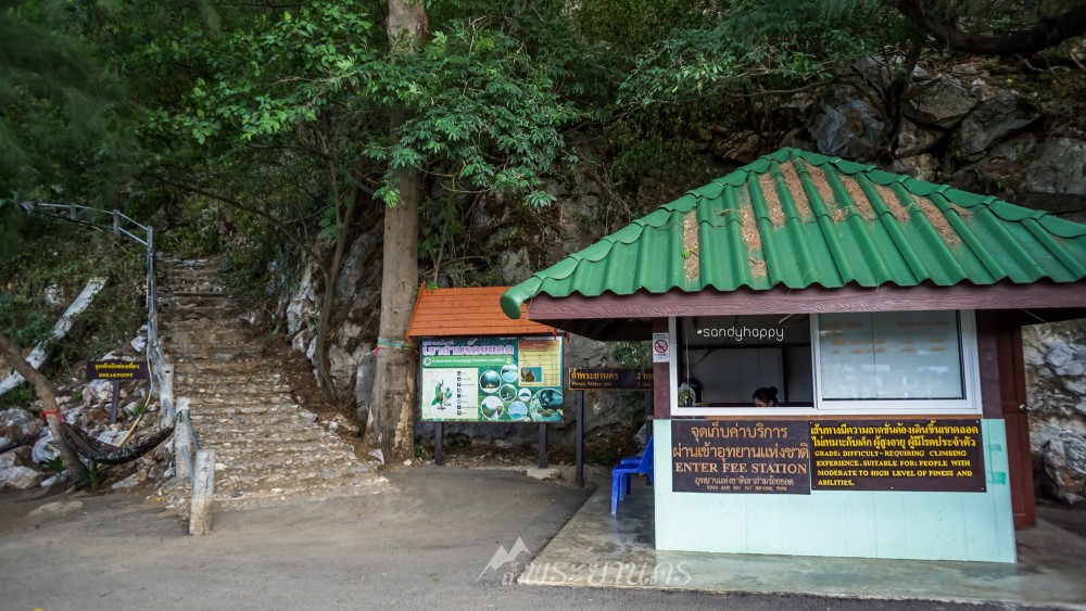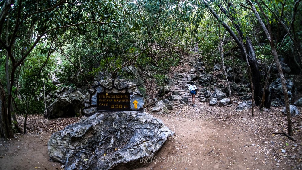เดินตามป้ายบอกทางไป สู่จุดเริ่มต้นสำหรับการเดินขึ้นเขาสู่ถ้ำพระยานคร