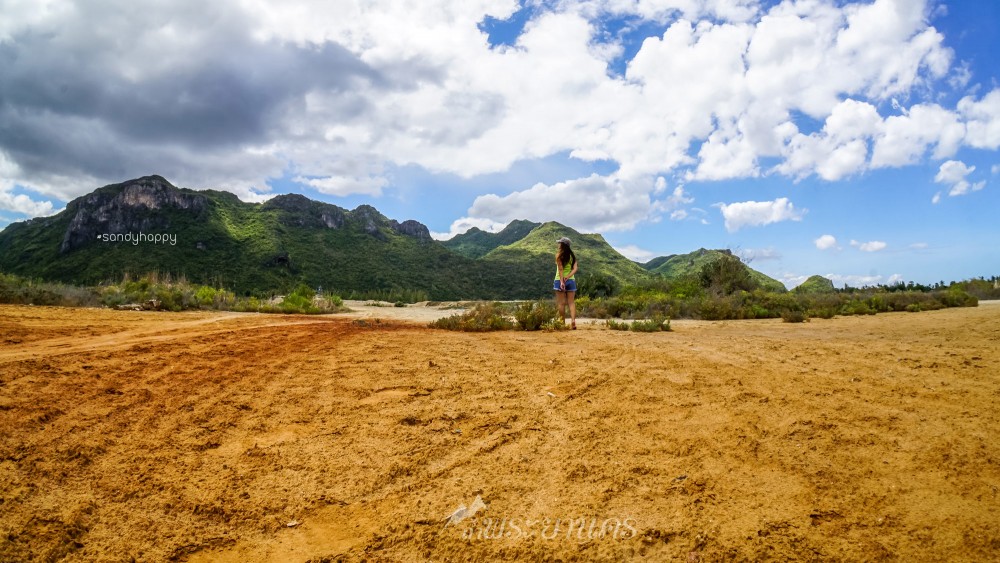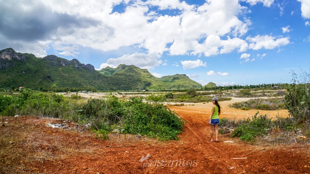 เราจองที่พักไว้ที่หาดสามร้อยยอด เก็บของเรียบร้อย ขับรถมาอีกไม่ไกลสู่บ้านบางปู ระหว่างที่ขับรถมาเห็นวิวภูเขาสีเขียวเข้มที่โดนแดดตัดกับพื้นดินสีส้มแบบนี้ ก้อนเมฆเป็นก้อนปุยๆ บนท้องฟ้าสีฟ้าเข้ม มันสวยมากๆ ทำให้อดใจแวะจอดถ่ายรูปไม่ได้