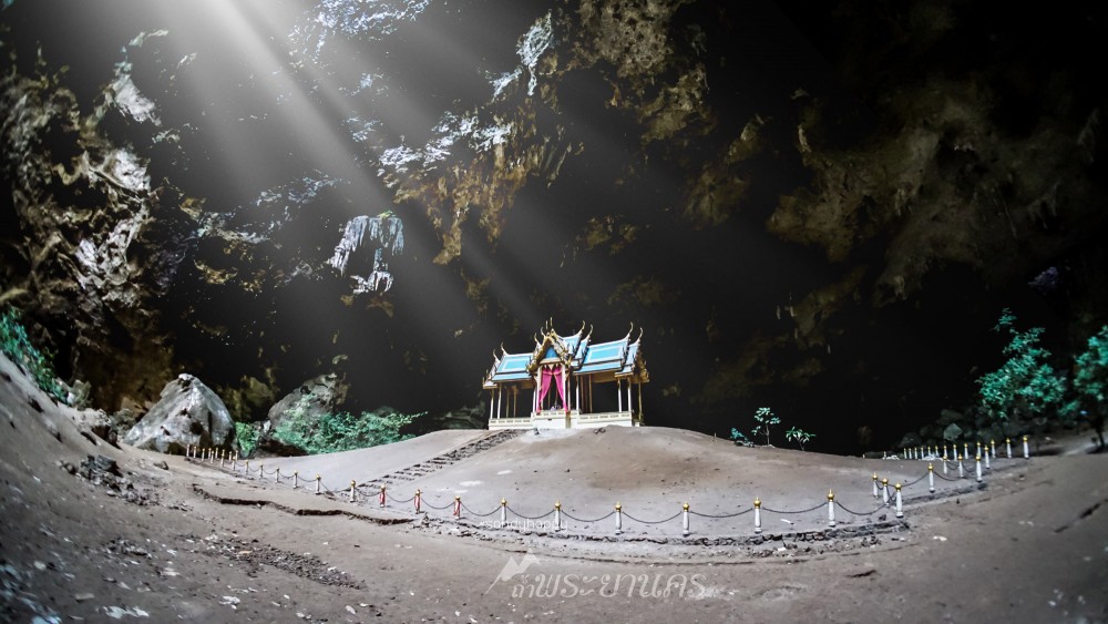พระที่นั่งคูหาคฤหาสน์ เมื่อมีแสงสาดส่องลงมากระทบนั้นสวยงามมาก มาดูลำแสดงยามเที่ยงลอดช่องเพดานสู่พระที่นั่งฯ ช่วงเวลาที่สวยที่สุดคือ 10.30-11.30 น. แล้วจากนั้นลำแสงจะเปลี่ยนมุมไปเรื่อยๆ และไม่ควรมาเกินบ่าย 2โมง เพราะลำแสงจะไม่ส่องลงมาในโพรงถ้ำ เป็นลำยาวๆ