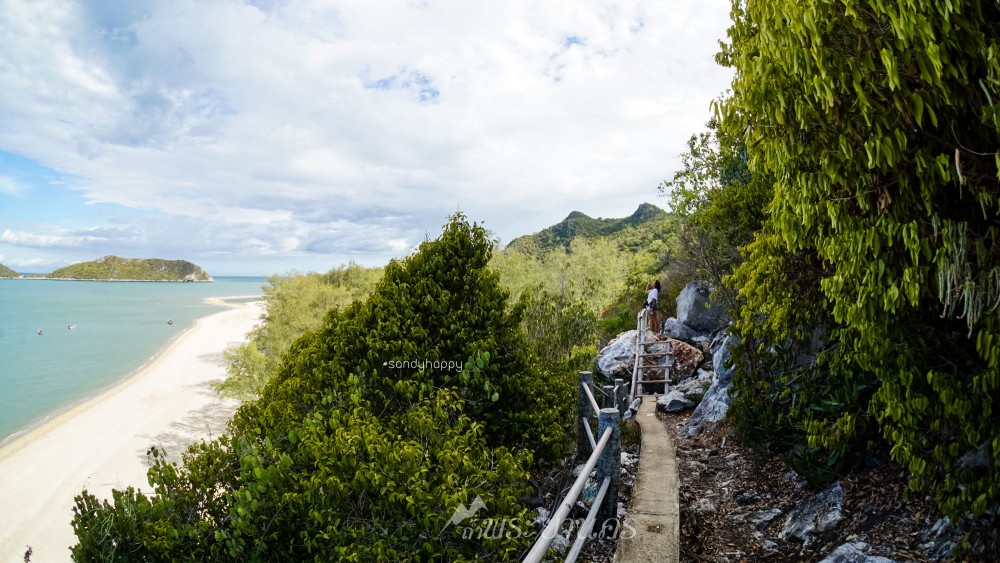2.เดินขึ้นเขาจากจุดที่ขายบัตรเข้าอุทยาน เดินข้ามเขาเทียนเป็นระยะทางประมาณ 530เมตร ไปยังหาดแหลมศาลา