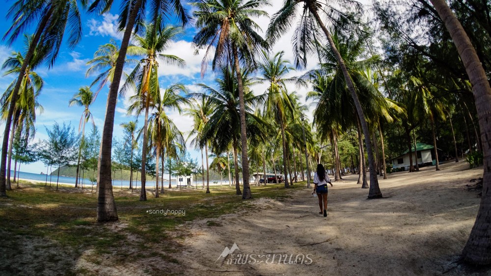 วิวชายหาดที่มีทรายสีขาว สะท้อนกับแสงอาทิตย์ มีต้นสนตลอดแนวชายหาด มันสวยจนไม่รู้จะบรรยายยังไง ดูรูปดีกว่าค่ะ