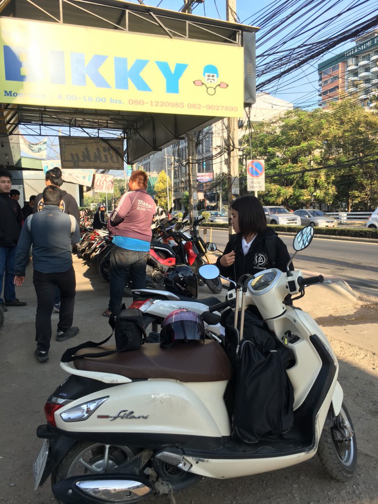 ไปถึงก็นั่งรถแดงหน้าสนามบินตอนเช้าสองคนไปร้าน Bikky เหมือนเดิมครับเช่ามอไซค์แกรนฟิลาโน่ 5 วันรวม 1,350 ได้ส่วนลดสมัครสมาชิกในเวปเตรียมแว้นต่อ