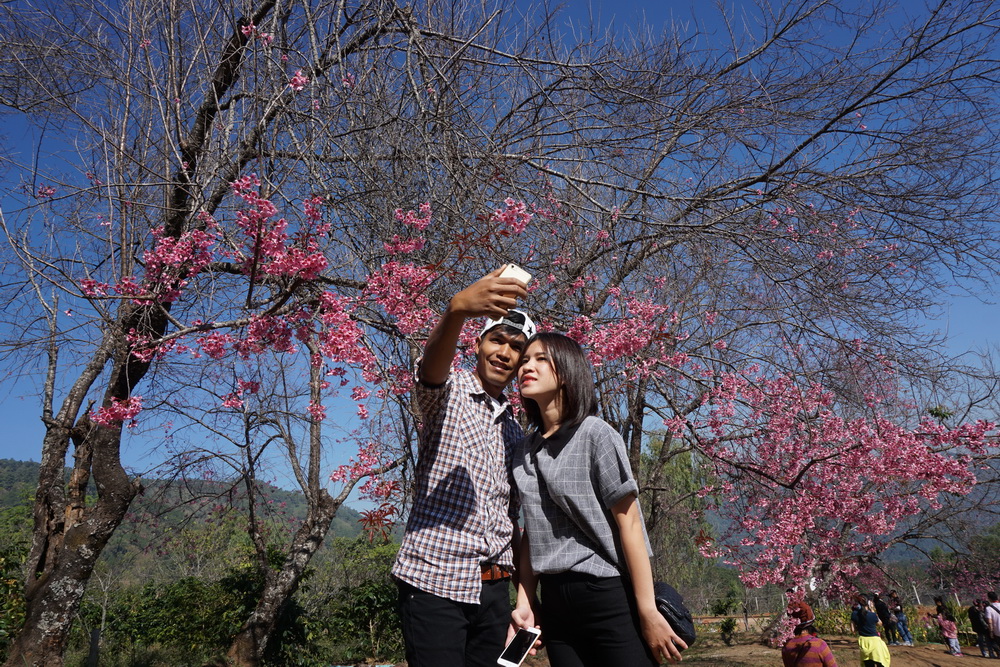 ขับขึ้นมาตามทางอ่าาา เจอแล้วซากุระเมืองไทยย เหมือนจะโรยแล้วเพราะว่าใบเริ่มแซม