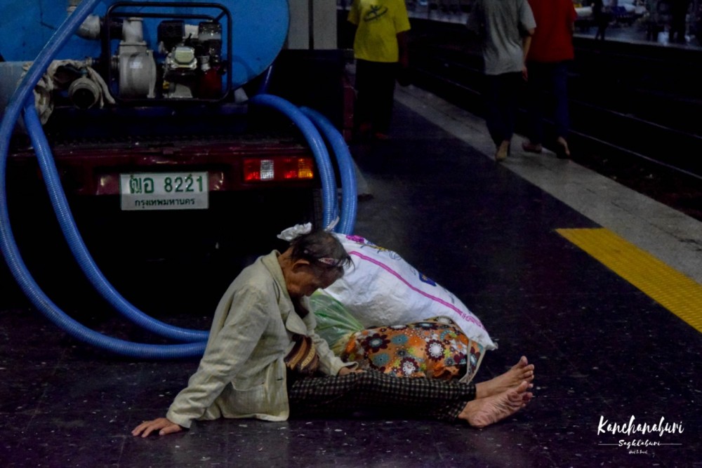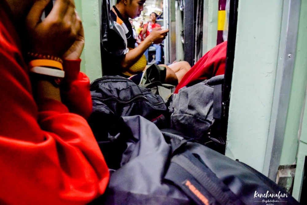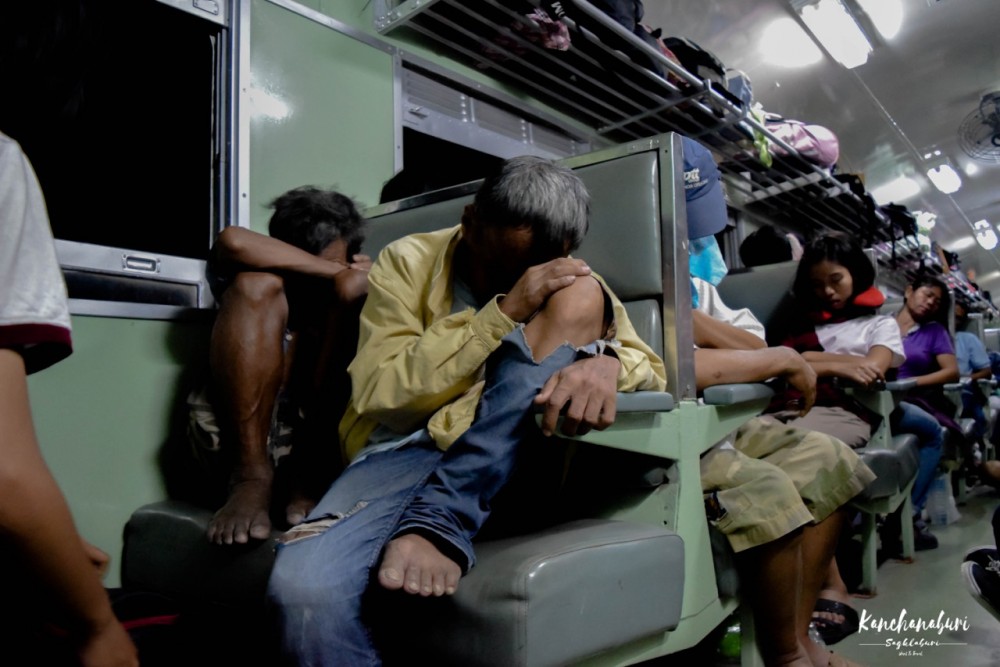 อะเมซิ่งกิงกาเบลมากค่ะ 7 ชั่วโมงต่อจากนี้ไปคือความท้าทายของชีวิตที่บรรยากาศราวกับสงครามโลกก็ไม่ปาน แล้วแบบไม่มีที่นั่งไงต้องนั่งและนอนบนทางเดิน ลุงป้าผู้ขายของต่างเดินกันให้ควัก แล้วมีบ่นให้ด้วยนะว่าเกะกะทางเดิน อ่าตลกไปอีก เป็นเรื่องตลกที่ขำไม่ออก คือไม่ต้องบ่นได้มั้ย นี่ก็ไม่รู้จะนั่งไหนแล้วครัช บนรถไฟขบวนนี้เราได้เจอกับสองพี่สาววิศวะด้วยนะ จะไปกาญเหมือนกันมาร่วมเผชิญกับชะตากรรมเดียวกัน