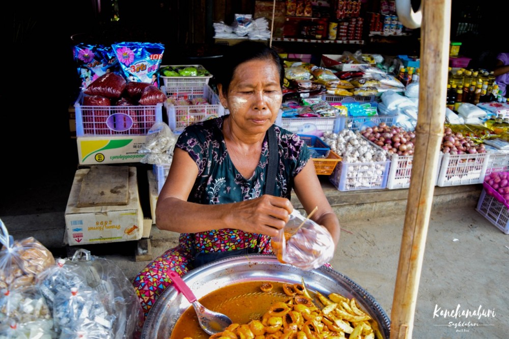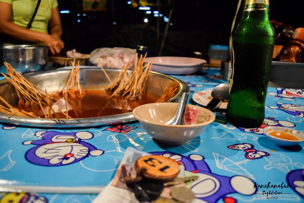 อะแฮ่มม หมูจิ้มจุ่มหน้าเซเว่นสังขละบุรี ไม้ละ 1 บาท ต้องมาลอง นะจ๊ะ