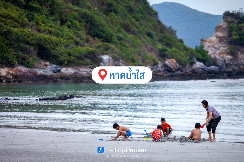 หาดน้ำใส หาดน้องใหม่ของอำเภอสัตหีบที่เพิ่งเปิดตัวมาไม่กี่ปี อยู่ภายในพื้นที่ของหน่วยสงครามพิเศษทางเรือ กองเรือยุทธการสัตหีบ มีลักษณะเป็นชายหาดที่โค้งทอดตัวยาวสวยงาม อีกทั้งชายหาดก็ค่อย ๆ ลาดลงไปทำให้สามารถลงเล่นน้ำได้อย่างปลอดภัย และที่สำคัญที่นี่น้ำใสสมชื่อมาก บรรยากาศค่อนข้างสงบ และยังเป็นจุดชมพระอาทิตย์ตกที่สวยงาม ที่นี่มีบ้านพักรับรองสำหรับนักท่องเที่ยวที่ต้องการมานอนค้างพักผ่อนริมทะเลที่แสนสงบแห่งนี้ หรือหากใครมาเที่ยวเกาะแสมสาร หรือเกาะขาม แนะนำให้แบ่งเวลามาเที่ยวหาดน้ำใสด้วยนะครับ ระยะทางห่างกันเพียง 1 กิโลเมตรเท่านั้นเอง