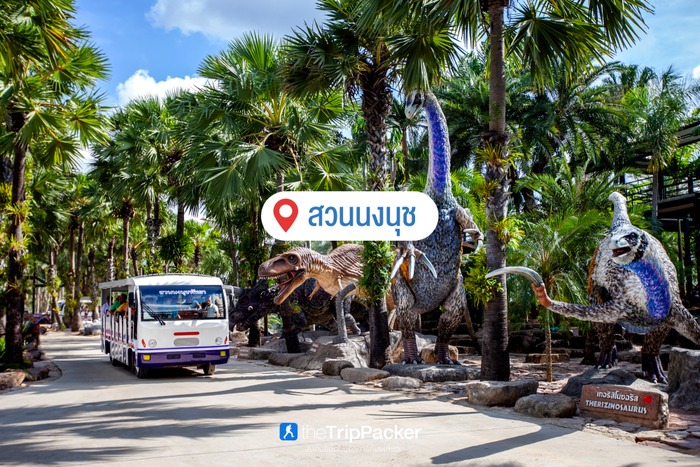 สวนนงนุชพัทยา เป็นสถานที่แรกที่เราแนะนำ เพราะอยู่ใกล้ตัวเมืองพัทยาที่สุด บนพื้นที่กว่า 1,500 ไร่ ถูกนำมาจัดเป็นสวนขนาดใหญ่ที่รวบรวมพันธุ์ไม้ในเขตร้อนไว้มากกว่า 18,000 ชนิด และยังเป็นศูนย์กลางของสวนพฤกษศาสตร์ระดับโลกภายใต้แนวคิดรักษ์ต้นไม้ ลดโลกร้อน และสวนนงนุชแห่งนี้ยังติด 1 ใน 10 ของสวนที่สวยที่สุดในโลกอีกด้วย ภายในสวนจะแบ่งเป็นโซนต่าง ๆ ไว้มากมาย เช่น สวนพันธุ์ไม้นานาชนิด สวนประติมากรรมสัตว์หลากหลายสายพันธุ์ รวมไปถึงที่นี่ยังมีสวนสัตว์ขนาดย่อมให้เราได้เพลิดเพลินอีกด้วย ใครอยากเจอเจ้าเสือโคร่งตัวใหญ่ตัวเป็น ๆ ในระยะที่ใกล้มาก ๆ จนแทบจะสัมผัสกันได้แนะนำให้ลองแวะมาครับ และที่นี่ยังโดดเด่นเรื่องการแสดงของช้างไทยแสนรู้แสนน่ารัก และไฮไลท์ล่าสุดที่เพิ่งเปิดตัวไปไม่นานก็คือ สวนไดโนเสาร์ ซึ่งต้องบอกเลยว่าโซนนี้เด็ดมากจริง ๆ ให้บรรยากาศเหมือนกับเราหลุดเข้าไปในหนัง จูราสสิค เวิลด์ เลยทีเดียว มีไดโนเสาร์หลากหลายสายพันธุ์ที่เหมือนจริงมากทั้งขนาด และรายละเอียด ใครชื่นชอบไดโนเสาร์เหมือนผม บอกเลยว่าต้องมานะครับ