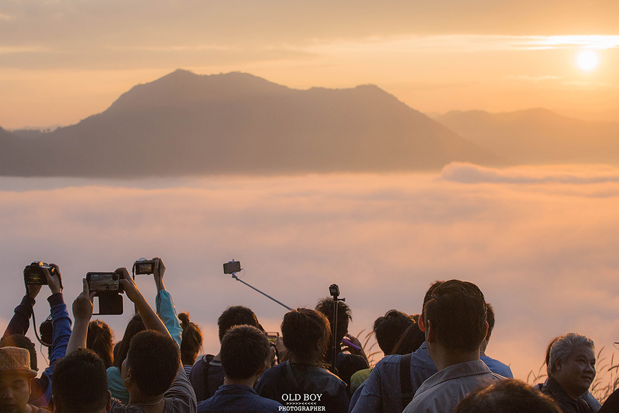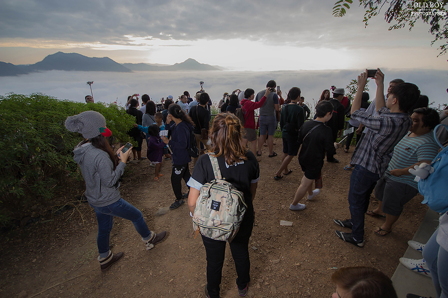 เช้าวันที่ 6 พ.ย.59 ผมตื่นตามเวลา และเดินทางไปตามกำหนดที่วางแผนไว้ แต่ผิดคาดตรงที่ว่ามีกลุ่มอื่นมาถึงก่อนผมอีก ผมได้ขึ้นรถคันที่สองซะงั้น (นี่ขนาดตื่นแต่เช้า/มาตามเวลา) ผมขึ้นไปถึงจุดชมวิวตั้งแต่ยังไม่มีแสง นาทีนั้นหลังจากลงรถแล้ว ต่างคนต่างรีบไปจับจองพื้นที่ เพื่อรอเก็บภาพทะเลหมอกและพระอาทิตย์ขึ้นในตอนเช้า ตอนมาถึงจุดชมวิวผมเห็นทะเลหมอกแน่นมาก มองเห็นตั้งแต่ยังไม่สว่าง ผมเก็บภาพไปเรื่อยๆ จนกระทั่งแสงแรกแห่งวันปรากฏ