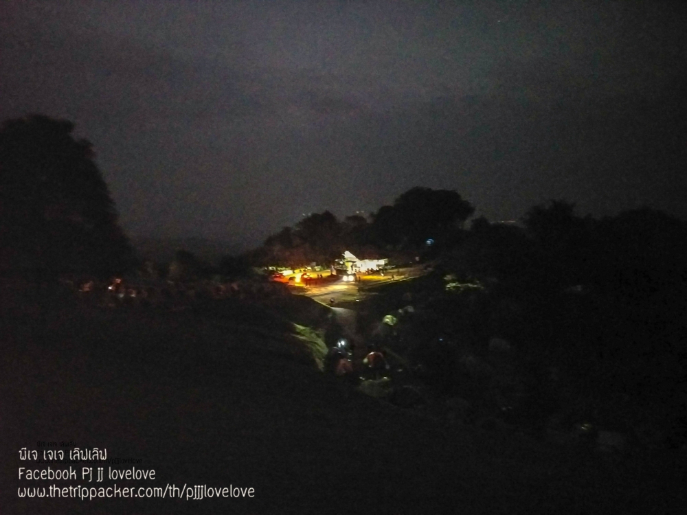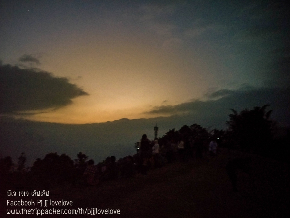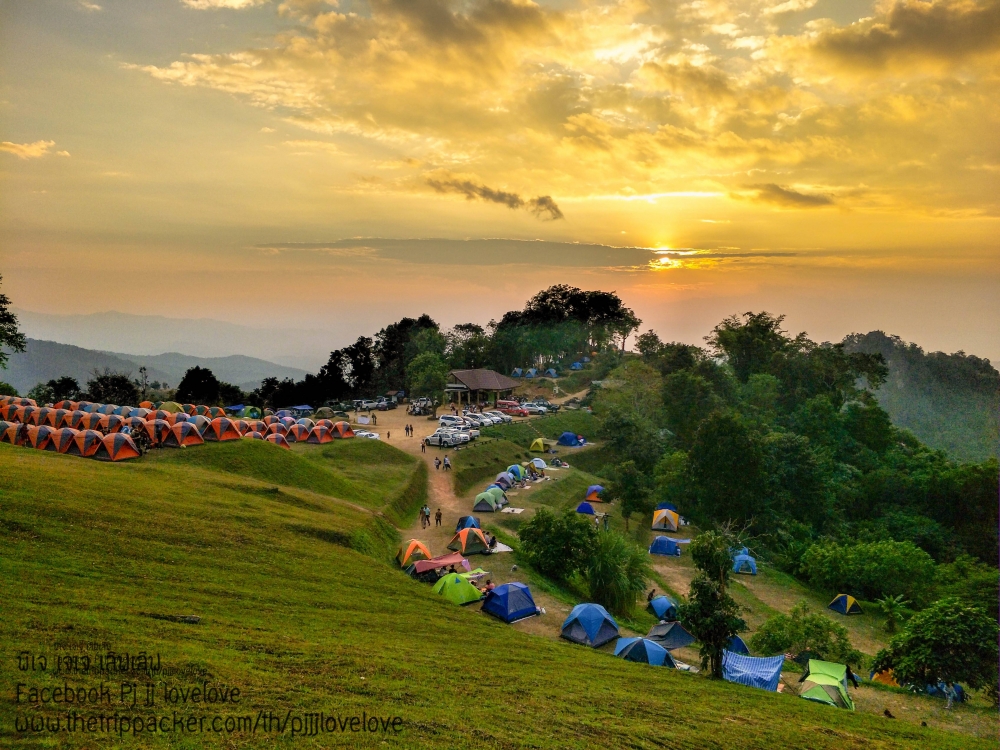 บรรยากาศพระอาทิตย์กำลังตกดิน กับผู้คนที่มาท่องเที่ยว บ้างก็ทยอยจัดข้าวของ ในเต้นท์และเตรียมทำอาหารกินกัน บางคนก็ขึ้นมานั่งชมวิวธรรมชาติ นั่งคุยกันเป็นคู่ๆ เป็นกลุ่มๆ หลายสำเนียง หลายภาษา มีทั้งอีสาน เหนือ และใต้