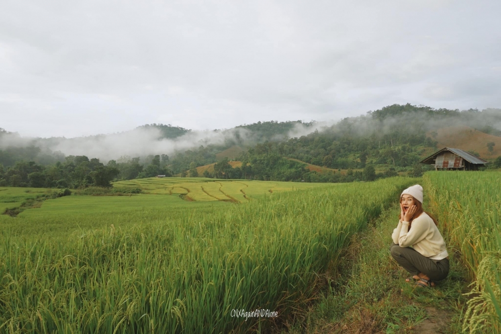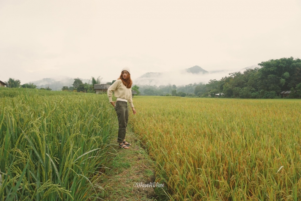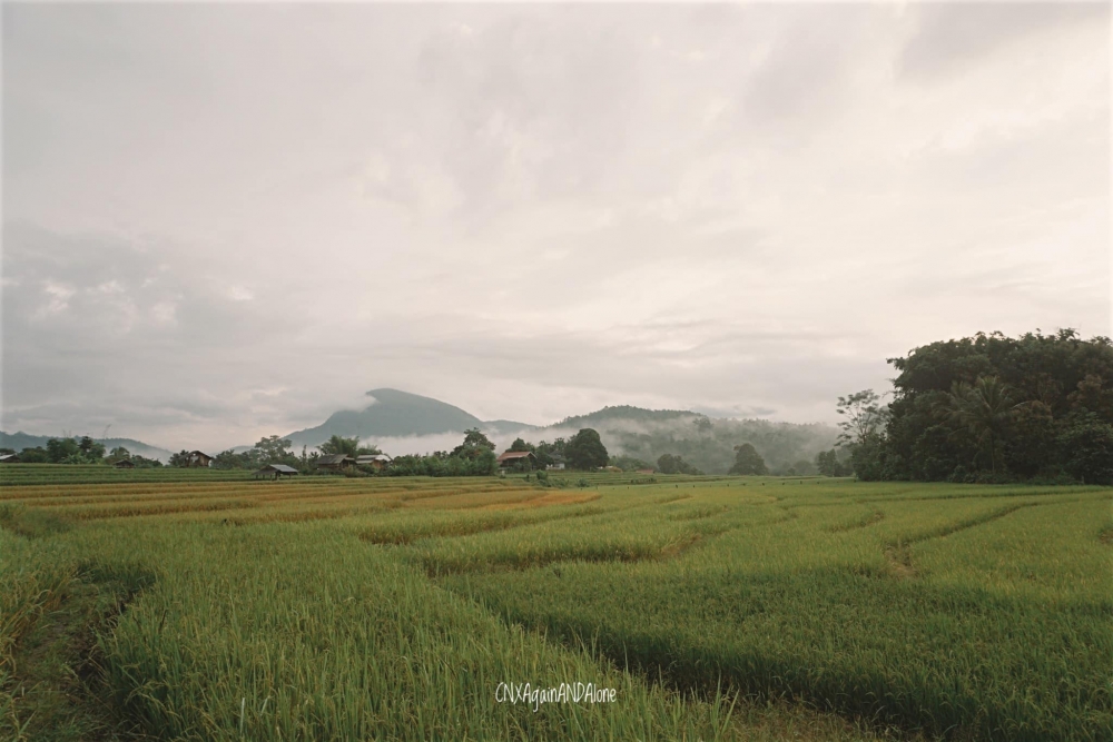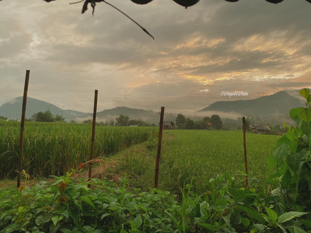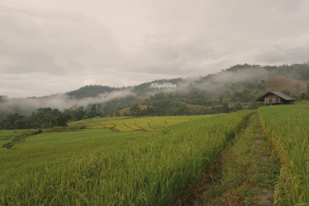 สายหมอกกับวิวทุ่งข้าว โคตรดี.. ไหนๆก็อาบน้ำแล้ว เราเลยหยิบกล้อง แล้วลุยเข้าทุ่งนา เพื่อเก็บบรรยากาศ ทางลื่นใช้ได้ เดินระวังแบบสุดๆ