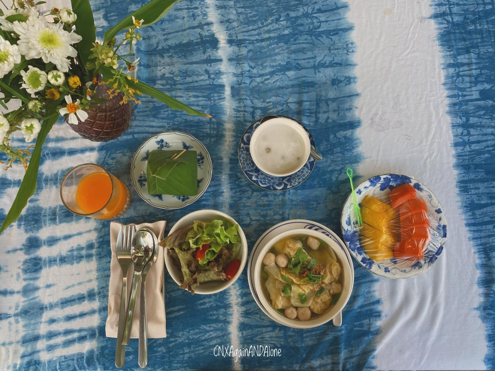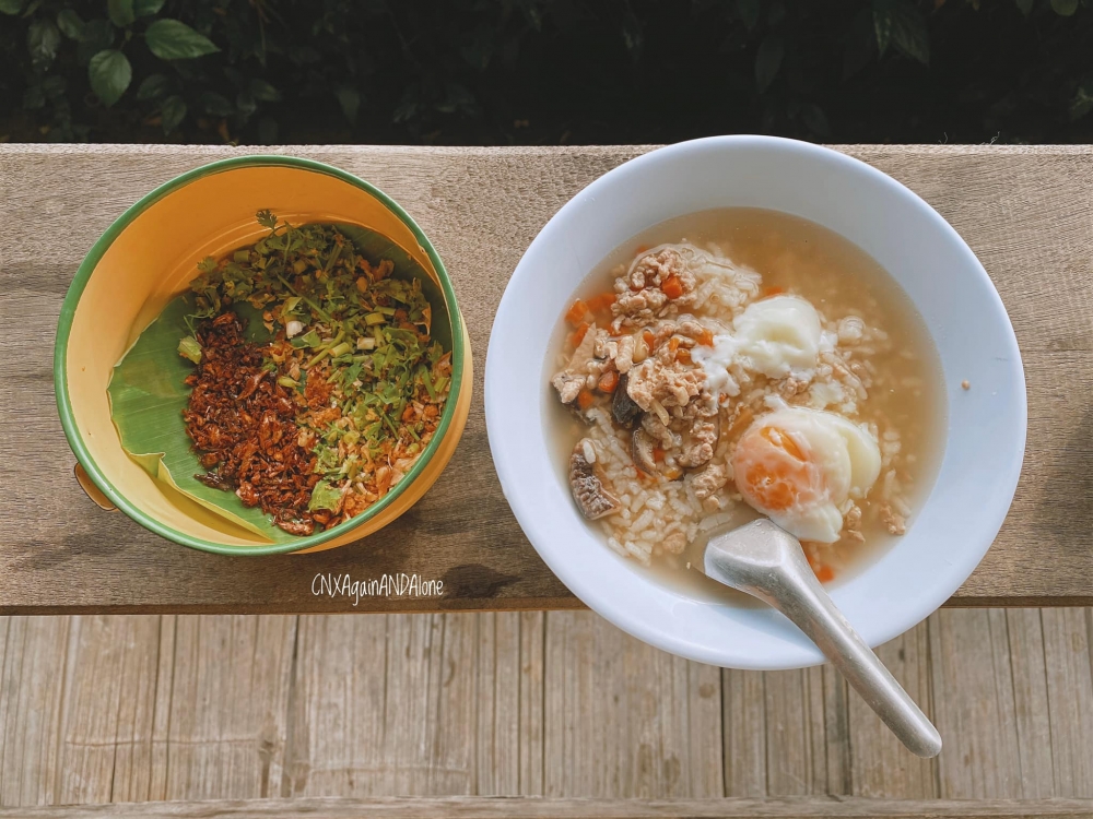 เราถ่ายรูปอยู่นาน.. ท้องเริ่มหิว เลยเดินกลับมาที่พักอย่างไม่ลังเล อาหารเช้ามาส่งถึงหน้าห้องเรียบร้อย ข้าวต้มหมูกับไข่ลวก ง่ายๆแต่อิ่มท้อง