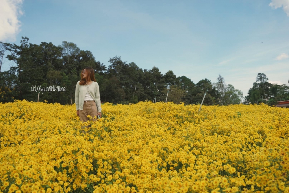ไม่มีคนเลยสักคน แต่กลิ่นก็ดอกเก๊กฮวยคือหอมมาก ถ้าตอนนี้ได้กินน้ำเก๊กฮวยเย็นสักแก้วก็คงจะดี..