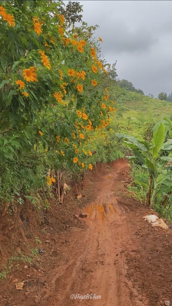 โอเคที่มาถึงได้ แต่ที่ไม่โอเคคือ ไม่คิดว่ามันจะลื่นขนาดนี้ เพราะก่อนหน้าเรามาถึงไม่กี่นาที มีฝนตกนะสิ ถนนก็เป็นดินเหนียว บวกกับหินก้อนใหญ่ ล้มไปไม่ต้องสืบ ขอบคุณตัวเองที่มีสติมาตลอดทาง