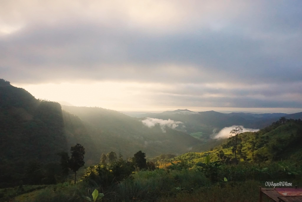 เราเสพบรรยากาศวิวไม่นาน เพราะเมฆฝนตั้งเค้ามาแล้วว ขับลงเชียงดาวต้องเปียกฝนแน่ๆ เราเลยจัดเตรียมอุปกรณ์กันฝนที่เตรียมมา แพ็คกระเป๋าเป้, กล้อง รวมถึงโทรศัพท์เรียบร้อย