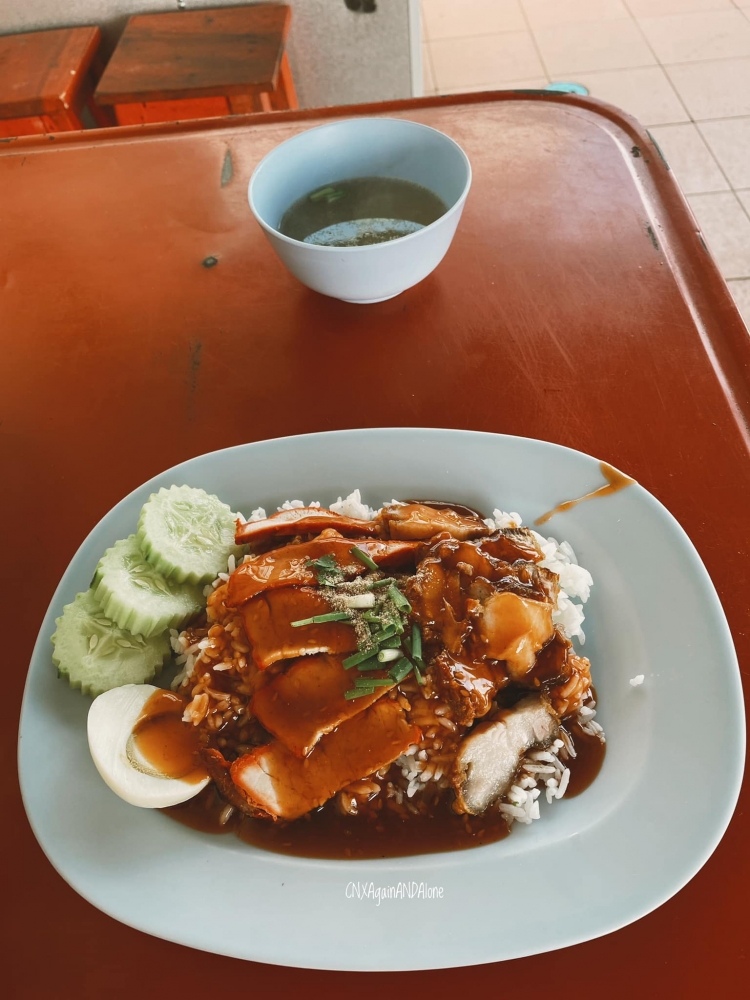 สรุปมื้อแรกของทริป คือข้าวหมูแดง ในราคา 50บาท