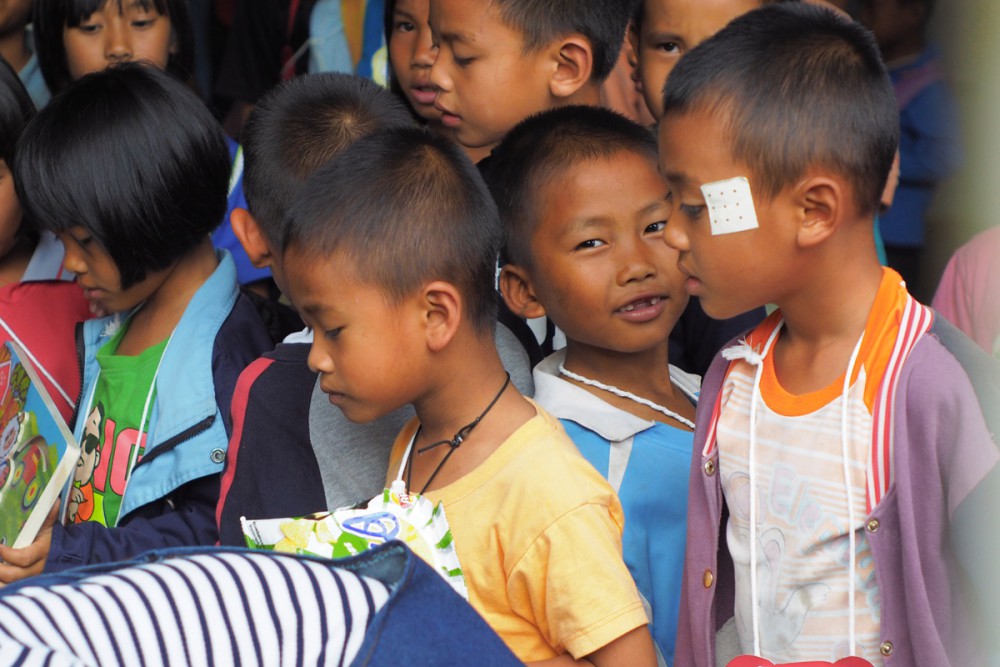 - ระหว่างทางลงไปบ้านกาแฟห้วยห้อม เราก็ผ่านโรงเรียนเล็กๆ ซึ่งทริปนี้เรามีพี่ผญ.กับผช.ที่เป็นแฟนกันหารรถกันขึ้นมาด้วย พี่ๆเอาของบริจาคพวกถุงเท้ากับอุปกรณ์การเรียนมาให้น้องๆที่นี่ เลยแวะมอบของกันนิดหน่อย แล้วก็ได้เจอเด็กๆพร้อมภาพเหล่านี้มา