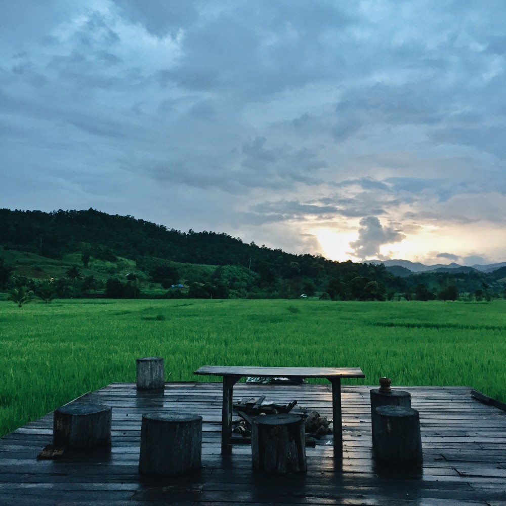 หลังจากเราเที่ยวจนอิ่มในวันแรก ก็ได้เวลาเดินทางกลับรีสอร์ทไปพักผ่อน และใช้เวลาในช่วงเย็นๆ กับการนั่งมองนาข้าวที่รีสอร์ทพร้อมรับลมเย็นๆ โดยที่มีวิวพระอาทิตย์ที่กำลังจะตกลงไปในภูเขา ก่อนจะปิดวันด้วยการกินข้าวเย็นด้วยเมนูเด็ดๆหลายเมนู :)