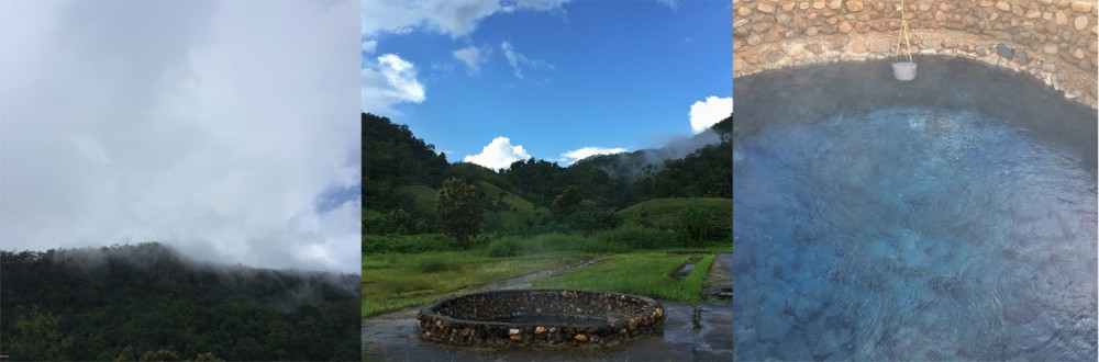 - น้ำพุร้อนบ้านหนองแห้ง เป็นน้ำพุร้อนแรร์ไอเท็มที่ถือว่า วิวดีมาก ตอนไปถึงฝนยังไม่หยุดตก เลยไปยืนรอประมาณ 5 นาที ฝนก็เป็นใจหยุดตกซะงั้น ที่นี่จะคิดค่าบริการในการแช่น้ำพุร้อน 40 บาท(ถ้าจำไม่ผิด) แต่ว่าถ้าแช่แค่เท้าหรือแค่ลวกไข่จะไม่คิดตัง ซึ่งจะแบ่งเป็นโซนอย่างชัดเจน ทั้งบ่อลวกไข่ ที่นั่งแช่เท้า ห้องแช่ตัว หรือ สระว่ายน้ำที่เป็นน้ำพุร้อนผสมน้ำเย็นด้วย แต่เนื่องด้วยเวลาไม่ทัน เราก็เลยจัดการแค่ลวกเท้าและไข่พอ และด้วยความฟินของหมอกที่ลอยอยู่ตรงภูเขาหลังฝนตก ทำให้ไข่อร่อยเป็นพิเศษ 55