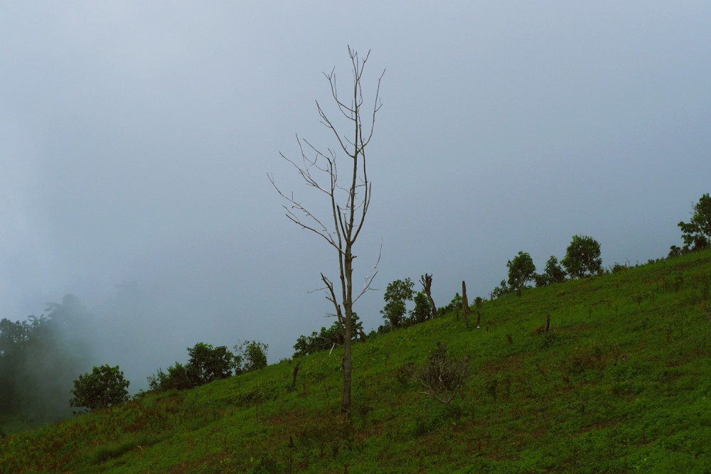 - จุดต่อไป คือ จุดชมวิวทะเลหมอก ซึ่งเราจะต้องปีนรั้วไม้ออกไป หมอกเยอะมาก เทาไปหมด ถ้ามองดีๆ จะมีต้นถั่วเหลืองประปราย ตามไหล่เขา ยืนรับลมเย็นๆตรงนี้ซักพักใหญ่ก็ไปต่อที่