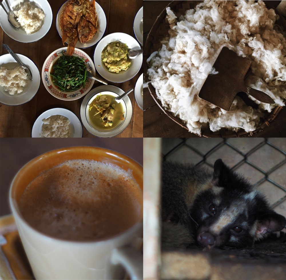 - บ้านกาแฟห้วยห้อม เป็นหมู่บ้านเลี้ยงแกะ แล้วก็ปลูกกาแฟ (ส่งร้าน Starbuck & Amazon) และแล้วความหิวก็มาเยือน ก็เลยแวะกินมื้ออาหารกลางวันแบบชาวบ้านๆ ซึ่งบ้านจะเป็นแบบสมัยก่อน จำได้ว่าเดินทั่วบ้านเหมือนเป็นบ้านตัวเองเลย 55 ส่วนข้าวก็จะคิดในราคาหัวละ 70 บาท พร้อมกับเมนู ปลาทับทิมทอด (ที่จับสดๆข้างหลังบ้าน แต่อร่อยจนต้องขออีกตัว), ผัดผักกูด, ต้มยำปลาทับทิม แล้วก็ผัดยอดฟักแม้ว ถ้าใครกินอิ่มแล้ว สามารถให้ชาวบ้านพาไปดูแกะแล้วก็ต้นกาแฟต่อได้ แต่ต้องเดินเท้าขึ้นไปอีกประมาณ 15 นาที แต่ด้วยความที่พกแม่มาด้วยก็เลยตัดสินใจไม่เดินขึ้นกัน ตบด้วยช็อปปิ้งเมล็ดกาแฟสตาร์บัค ในราคาถุงละ 100 บาทไปซะ 5 ถุง!