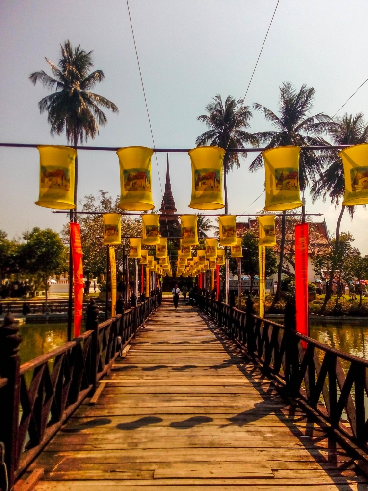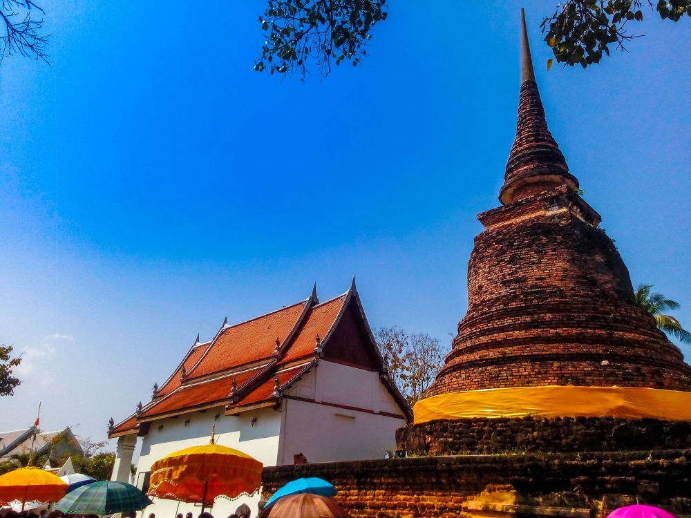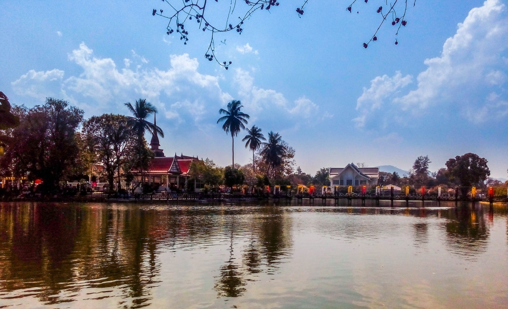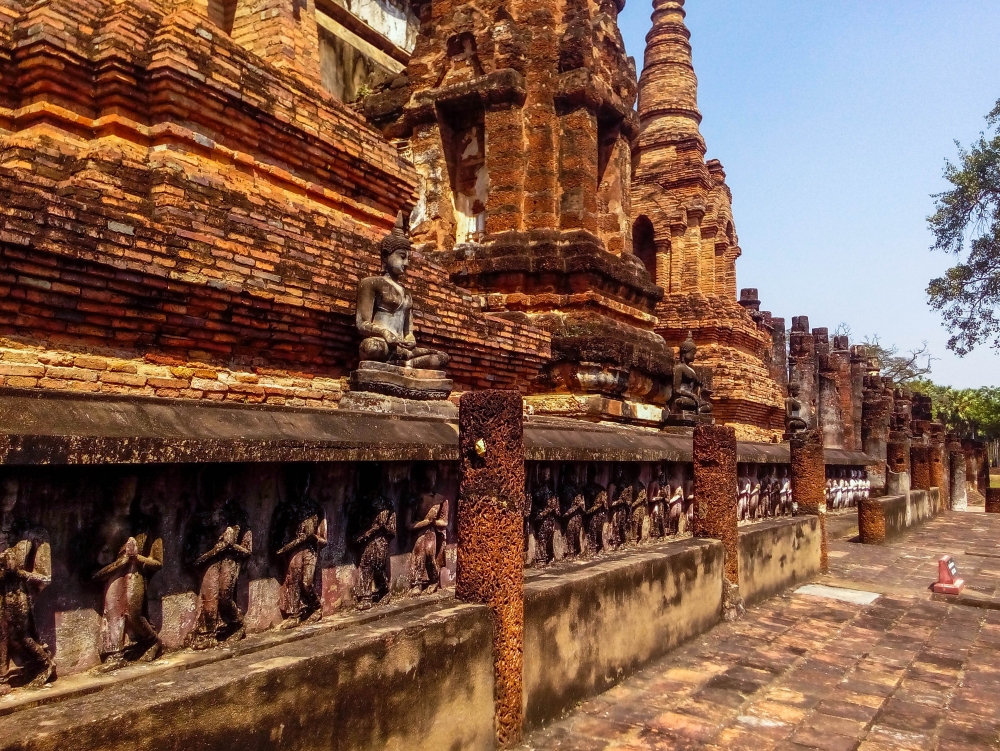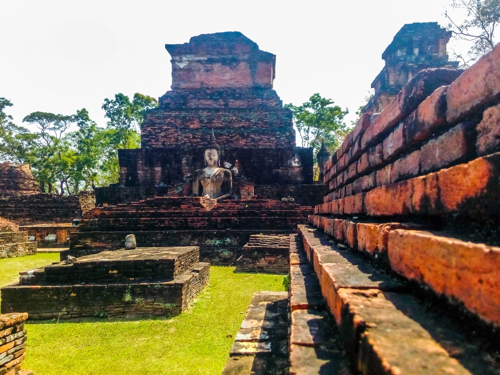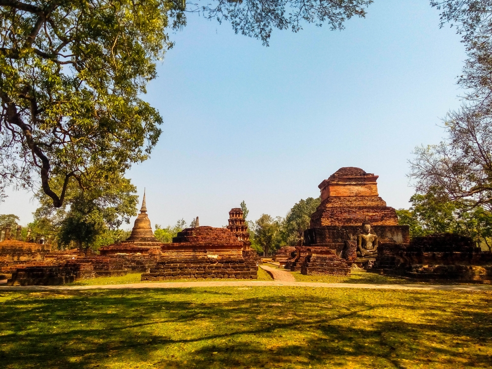 - จากนั้นก็วนออกมาทางเส้นเข้าตัวเมืองสุโขทัย จะเจอวัดที่อยู่กลางน้ำ มีคลองน้ำรอบตัววัดสี่ทิศ ชื่อวัด วัดตระพังทอง ตั้งอยู่ที่ถนนจรดวิถีถ่อง หมู่ที่ 3 ตำบลเมืองเก่า อำเภอเมืองสุโขทัย จังหวัดสุโขทัย สังกัดคณะสงฆ์มหานิกาย มีที่ดินตั้งวัดเนื้อที่ 44 ไร่ อาณาเขต ทิศเหนือยาว 5 เส้น 10 วา ติดต่อกับถนนจรดวิถีถ่อง ทิศใต้ยาว 3 เส้น 10 วา ติดต่อกับสวนป่ากล้วยของชาวบ้าน ทิศตะวันออก ยาว 8 เส้น ติดต่อกับหมู่บ้านประชาชน ทิศตะวันตกยาว 8 เส้น ติดต่อกับพิพิธภัณฑสถานแห่งชาติ รามคำแหง (ข้อมูลวิกิพีเดีย)