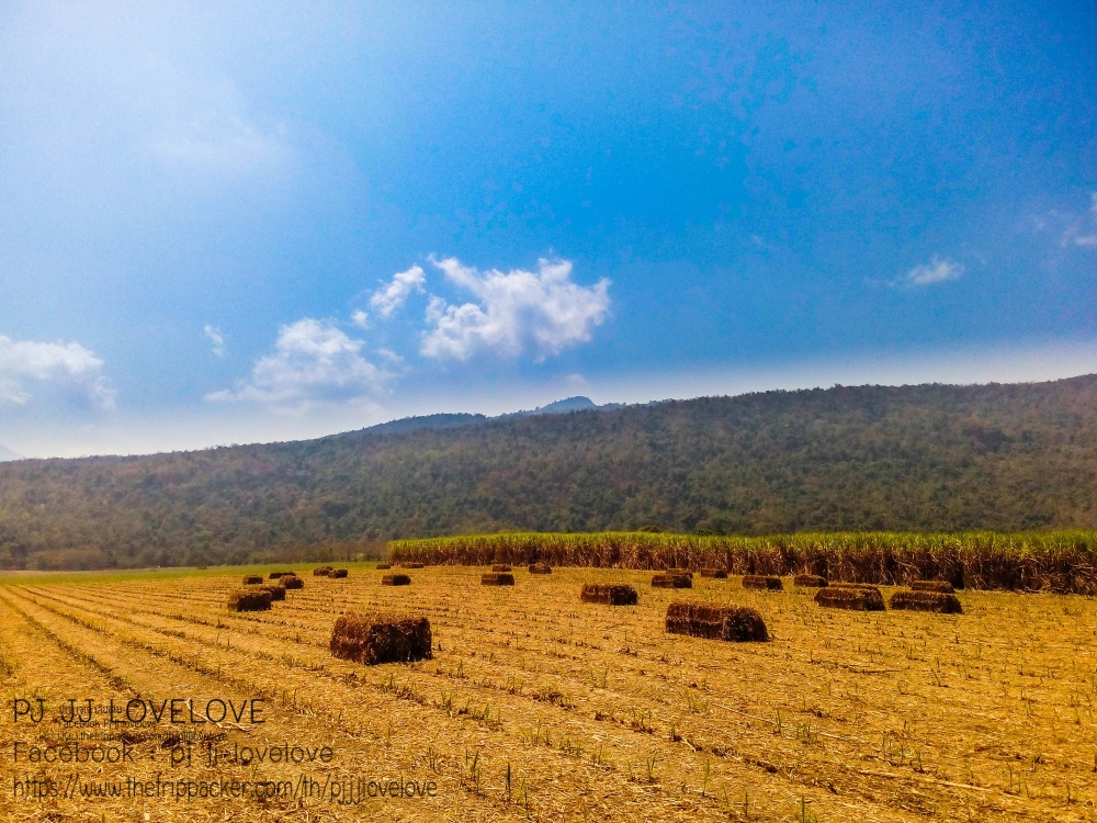 - ไร่อ้อยแห้งเฉา เพราะเจ้าไม่อยู่ ...วิวท้องทุ่งไร้อ้อย มีก้อนๆ นั้นน่าจะเป็นพวกใบอ้อยที่เขาอัดด้วยรถอัดฟาง วางเรียงๆกัน วิวด้านหลังเป็นภูเขา ลมเย็นๆ น่าจะมีงานดนตรีอะไรนะเนี้ย ..สวยจริงๆ