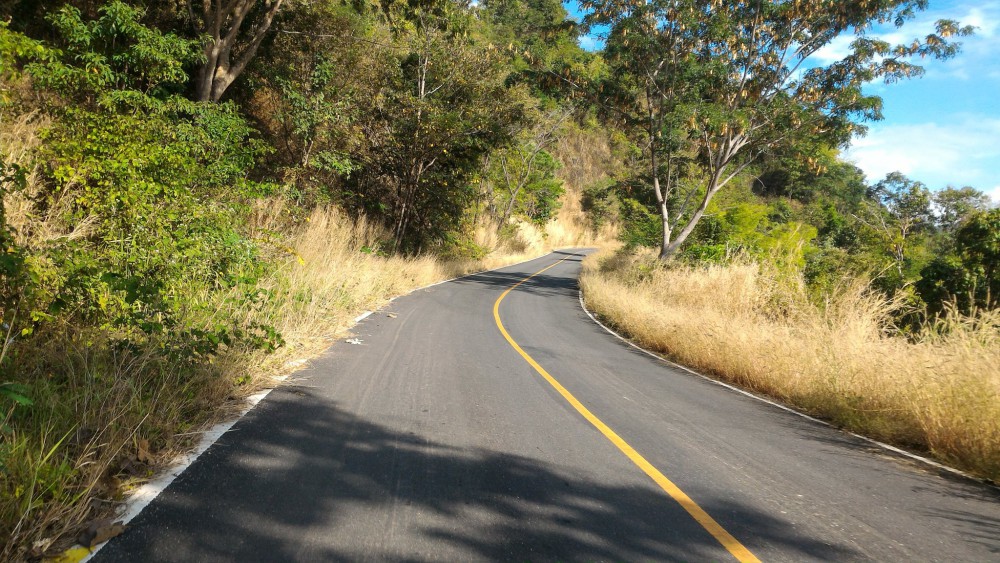ขี่ไปเรื่อยๆ ประมาณ 15 กม.นะคะ จะเจอทางเข้าค่ะ มีป้ายเล็กข้างทาง ซ้ายมือ ช่วงนี้กำลังปรับปรุงถนนค่ะ