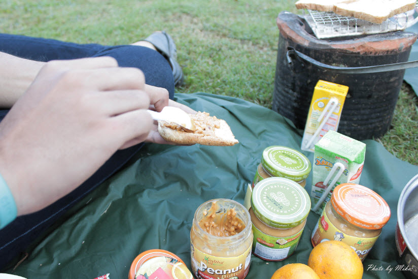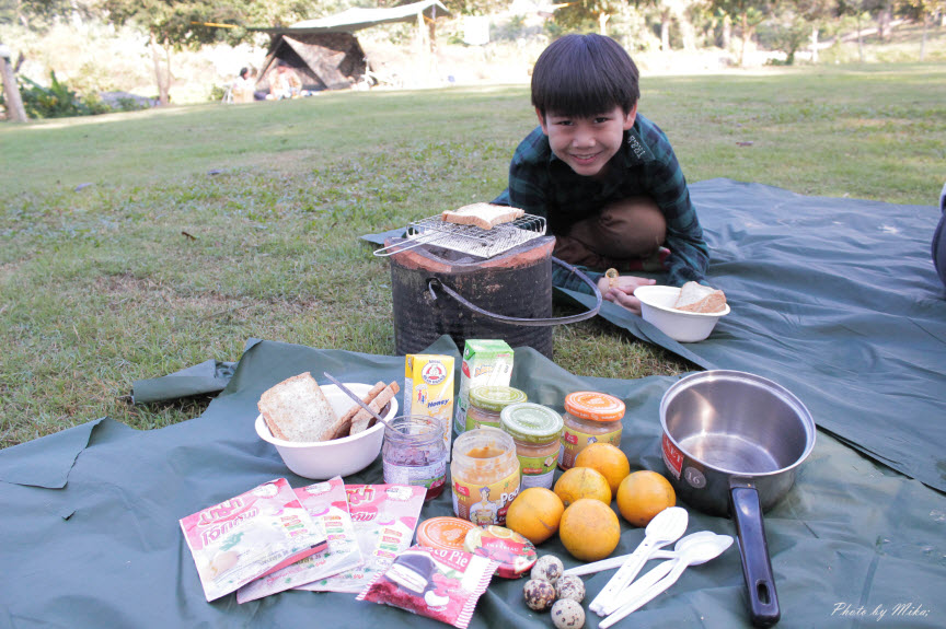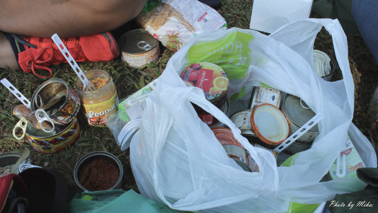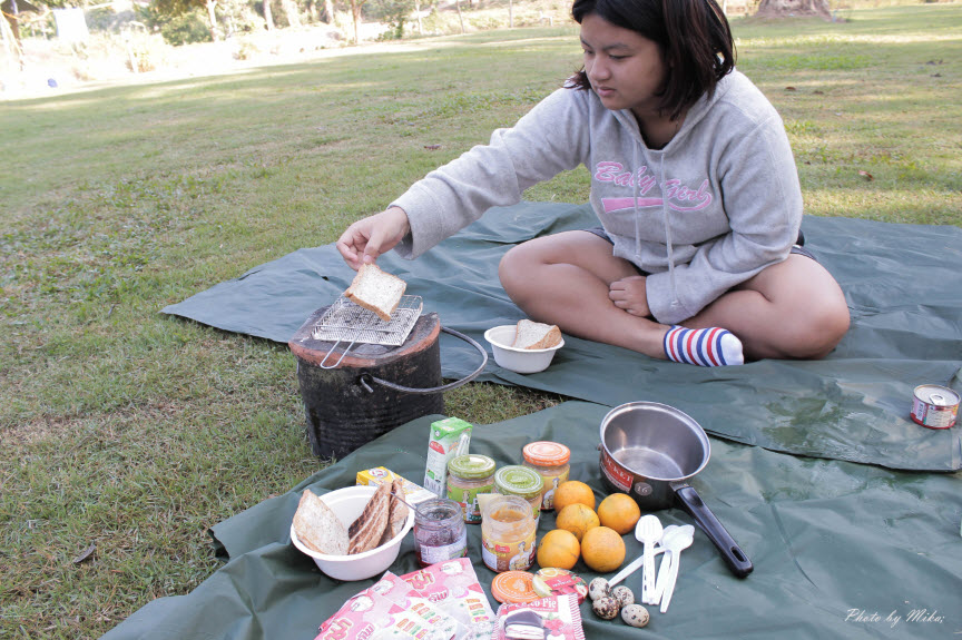 ถึงเต็นท์เเล้วโยนของเเล้วพักกินข้าวกัน มื้อเเรกคืออาหารกระป๋องที่เตรียมาตั้งเเต่กรุงเทพค่ะ