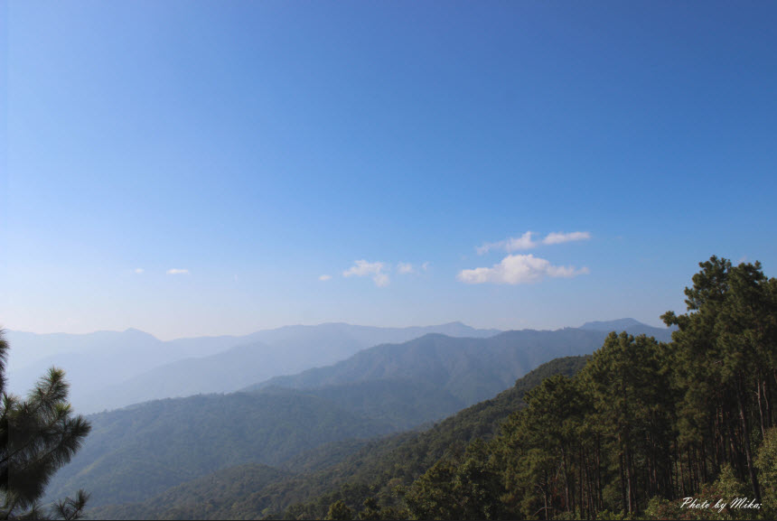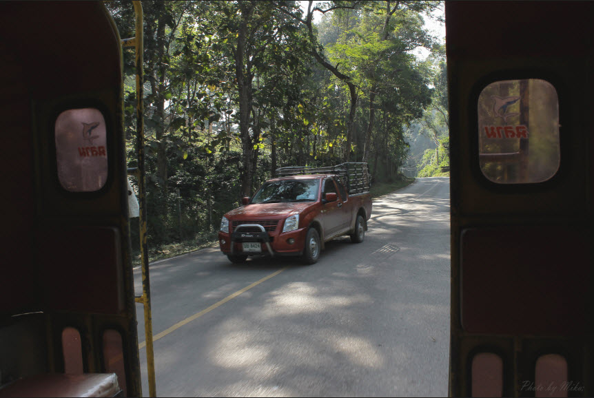 พวกเรานั่งไปในคันที่สอง ระยะทาง 32 กิโลขึ้นเขา ทั้งชัน ผ่านโค้งหักศอกนับไม่ถ้วน ยิ่งขึ้นสูงอากาศก็ยิ่งเย็นลง วิวสองข้างทางก็สวยขึ้นเรื่อยๆ